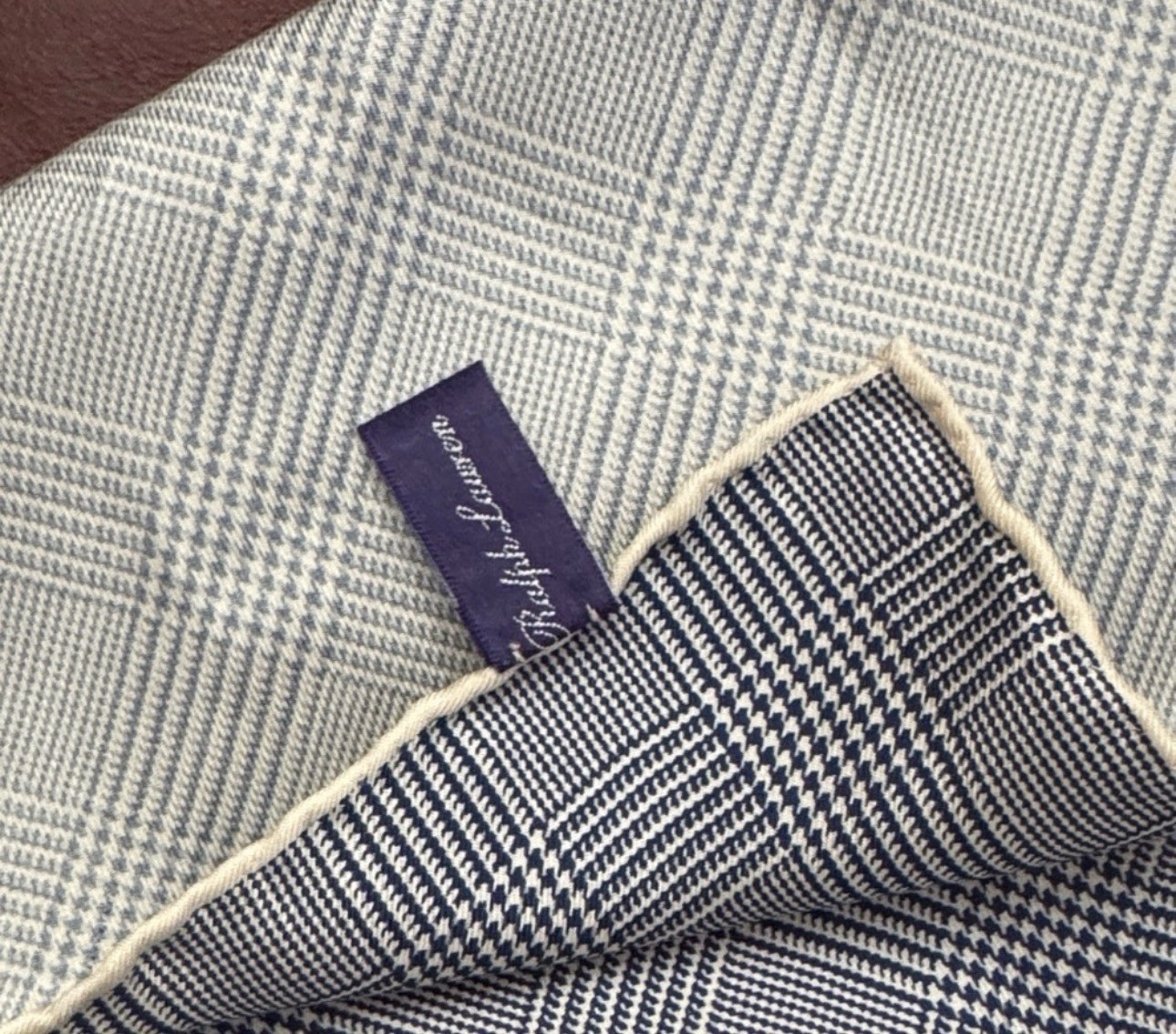 Ralph Lauren Purple Label Men's Silk Plaid Blue White Patterned