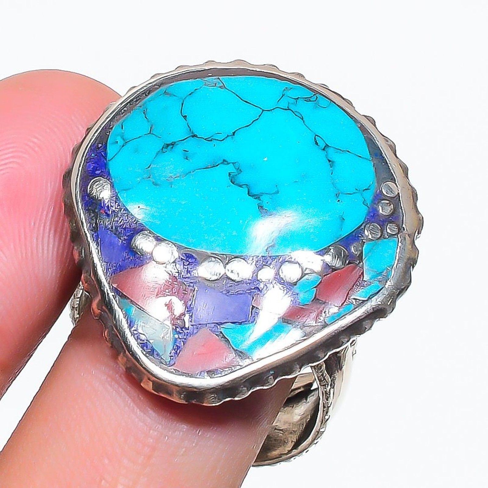 как выглядит Tibetan Turquoise Lapis lazuli Coral BOho Nepali Jewelry Adjustable Ring SR 3357 фото