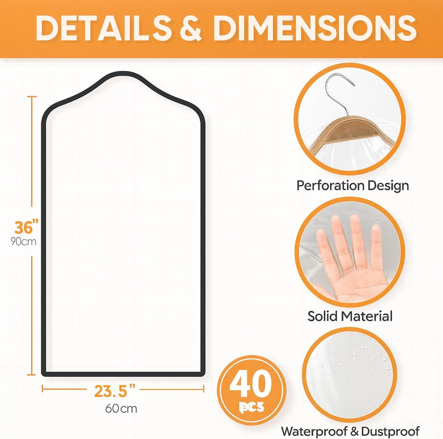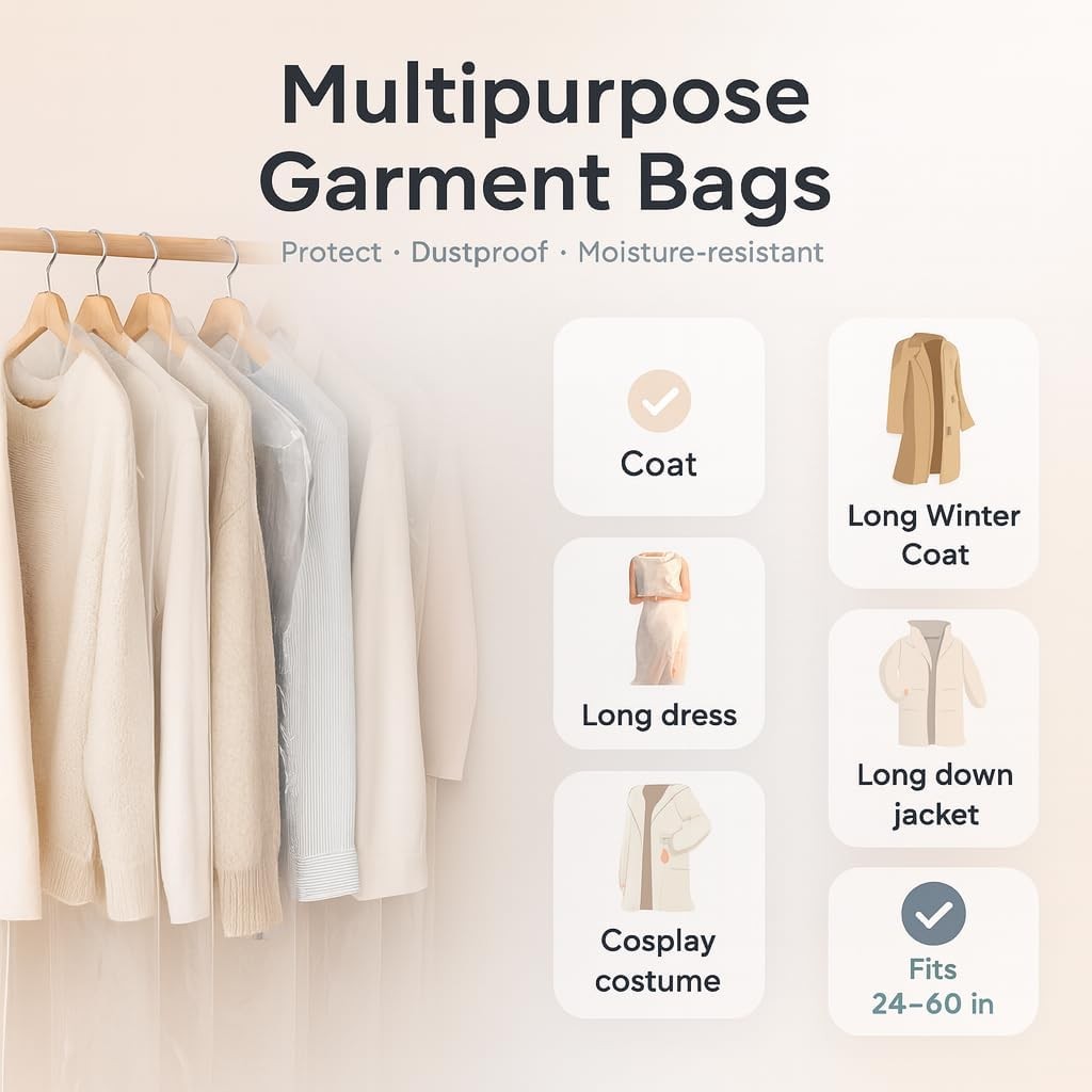 40 Pack Clear Plastic Garment Bags, 35.5 x 23.5, Clothes Covers for Hanging, D