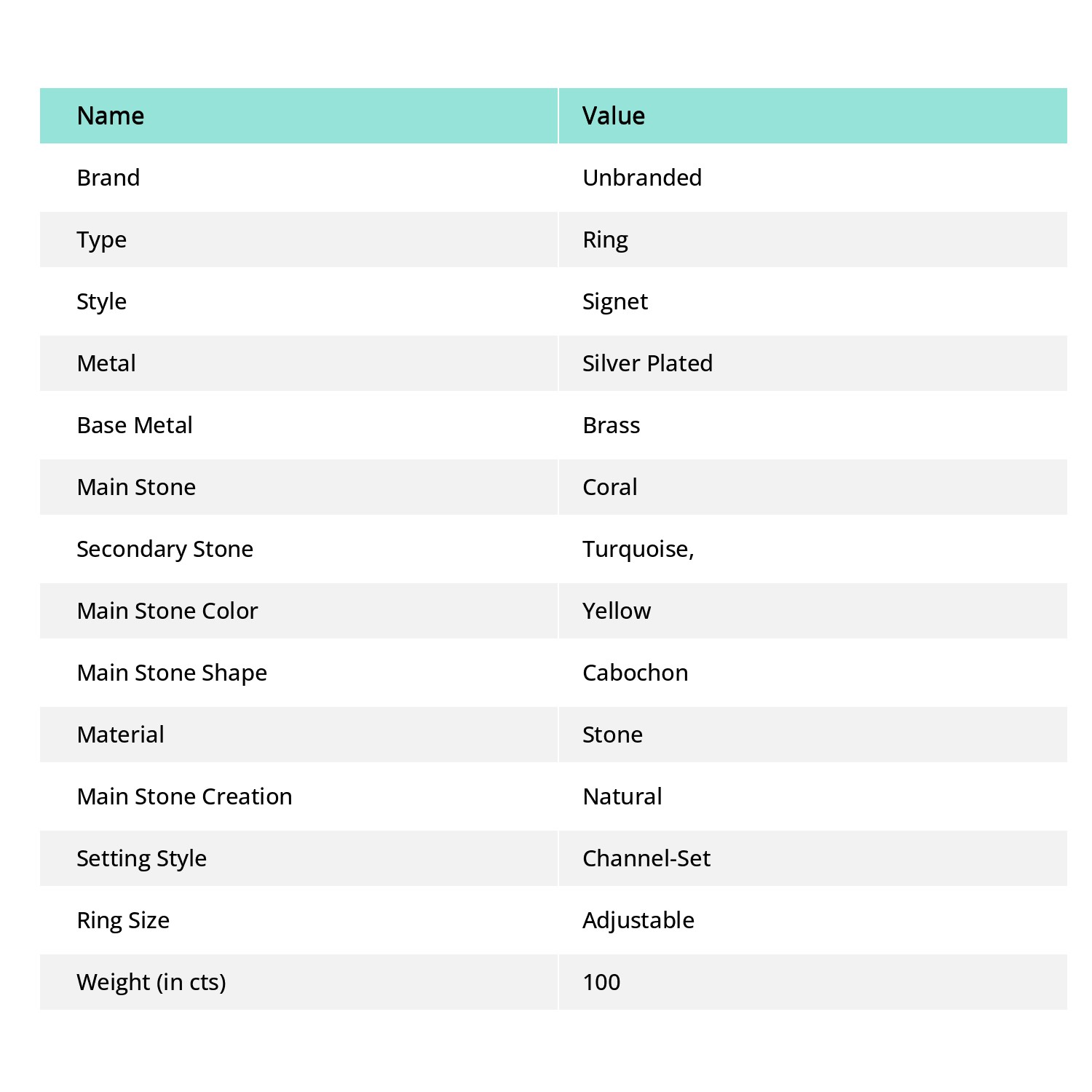 Weight (in cts): 100