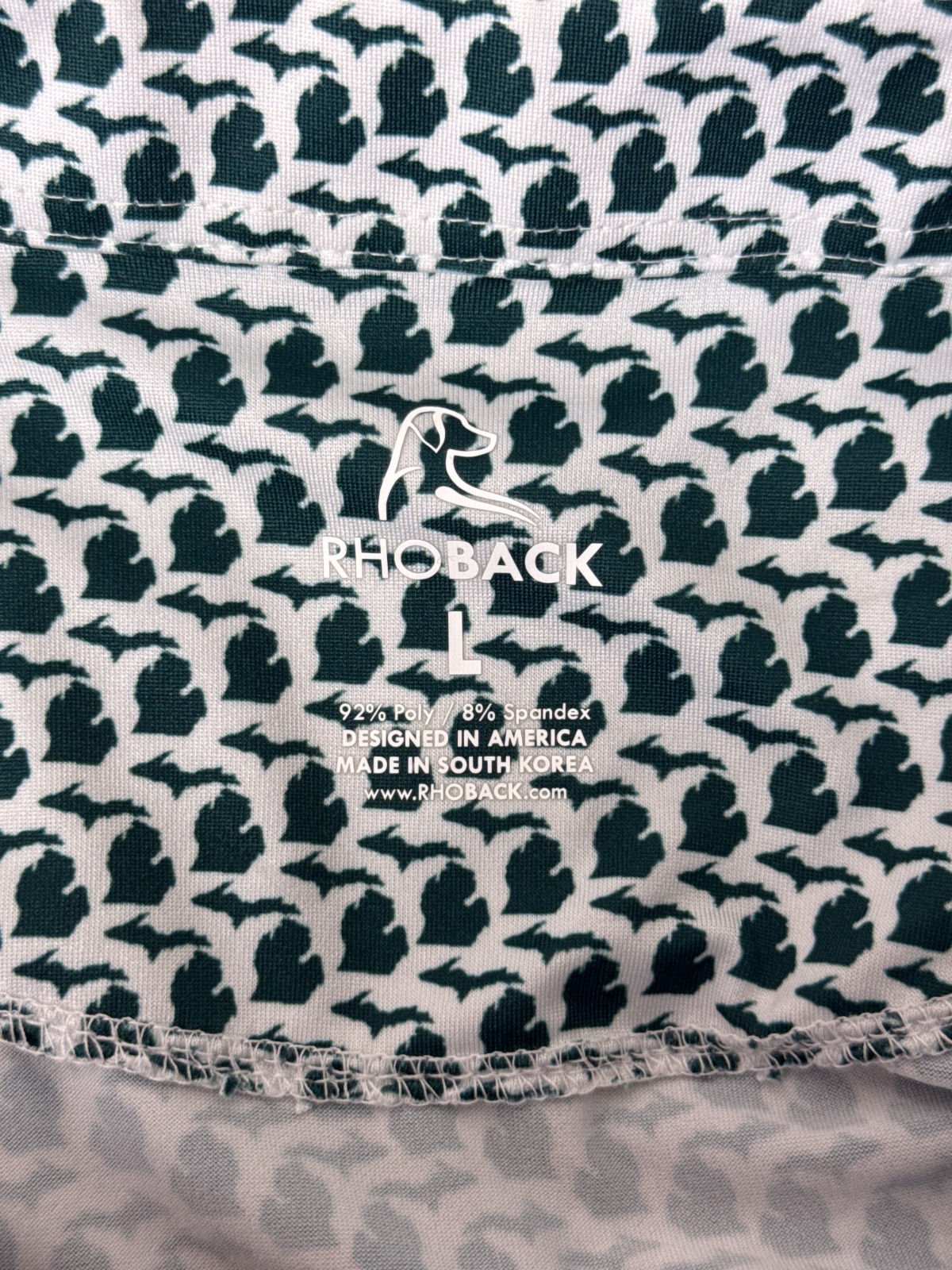 Rhoback Polo Shirt Large Mens State of Michigan All Over Print Green