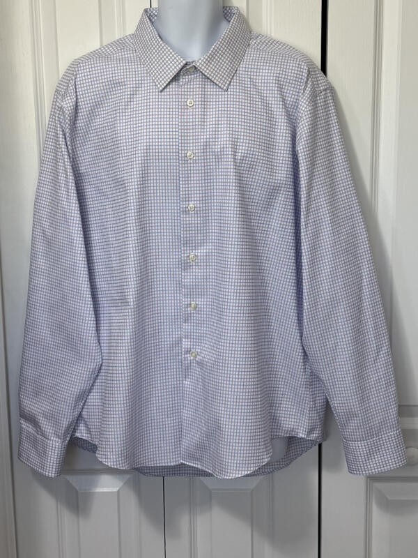 EGARA NWOT Blue White Striped Grid Dress Shirt 2XL