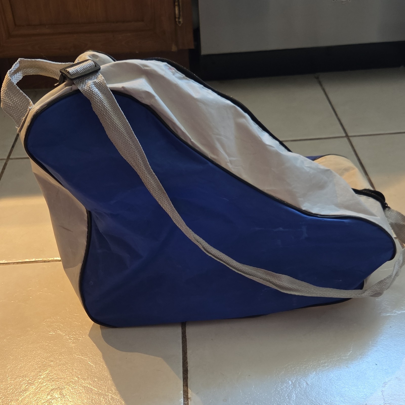 White Youth Roller Skates with Pink Wipeout Pads, Carry Bag Accessories