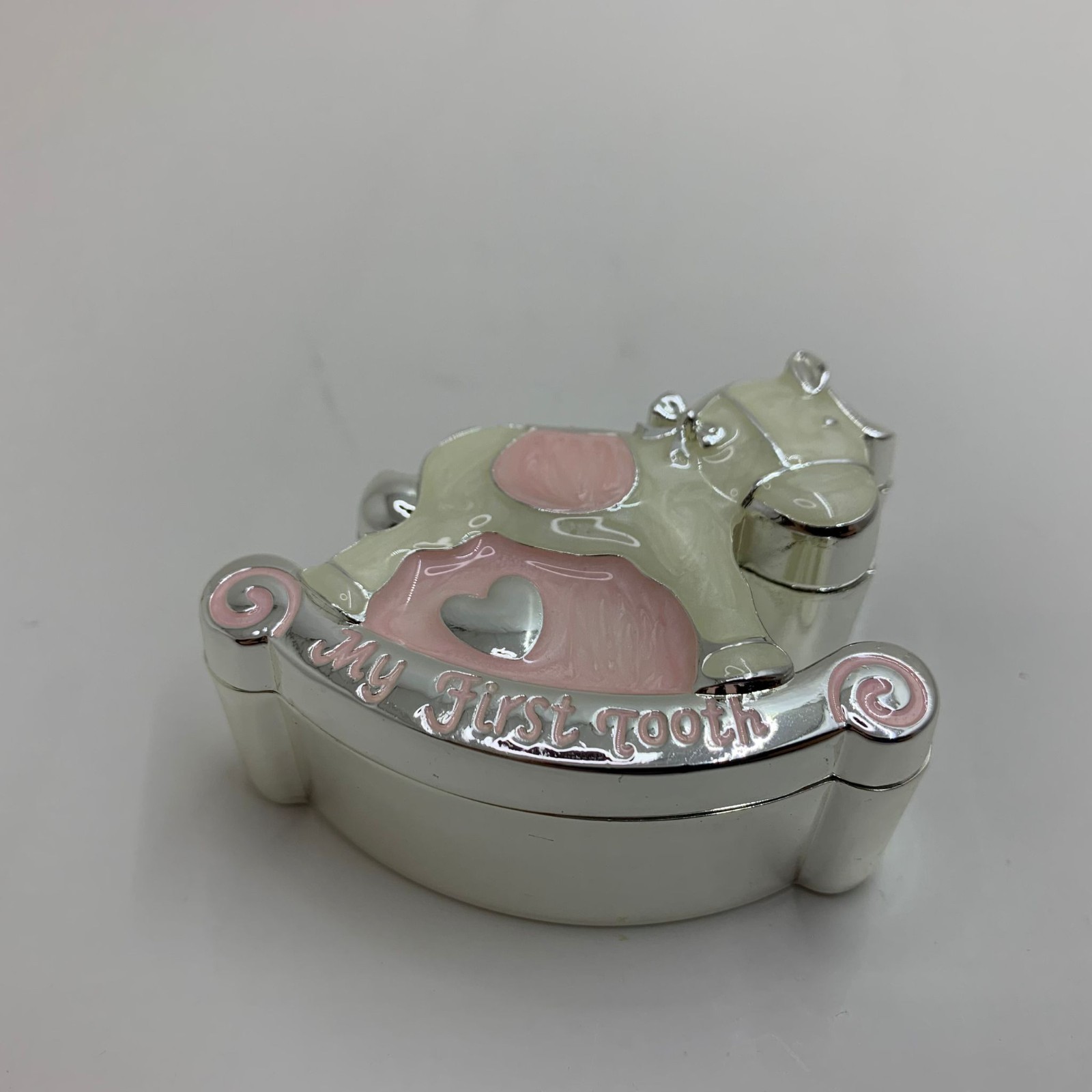 Silver Plated Baby Keepsake Boxes Rocking Horse First Tooth Curl Set Pink Enam