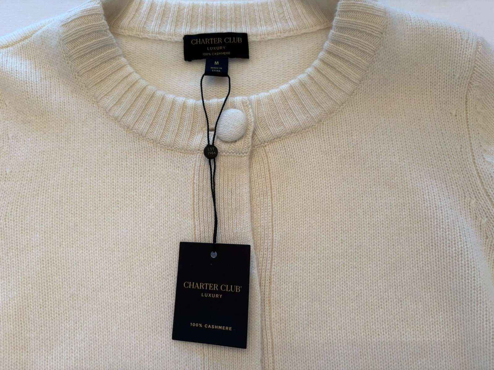 как выглядит Charter Club Luxury Cashmere Cardigan Vanilla Ice Sweater M New фото