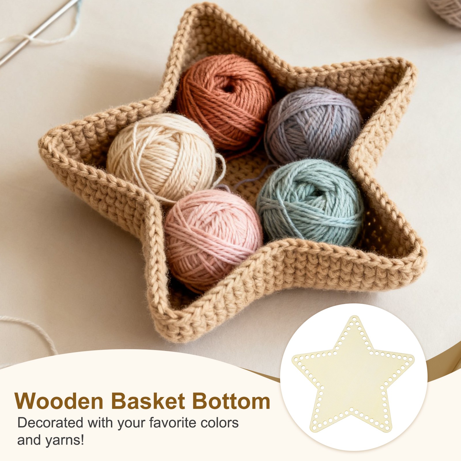 2Pcs Crochet Basket Base, 8 x 8 Basket Bottoms Star Shape Wood Base