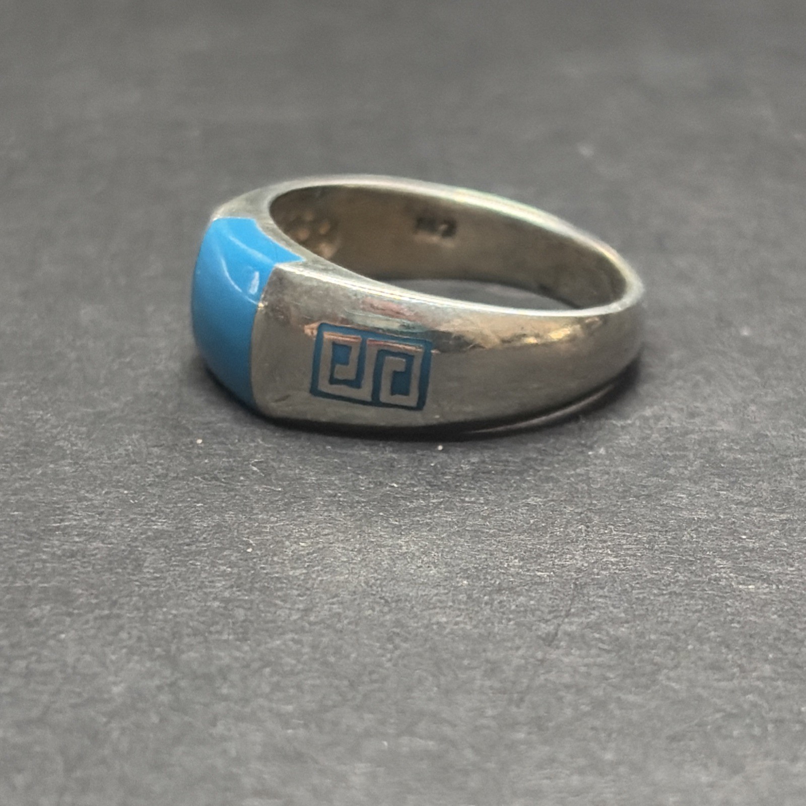 как выглядит Vintage Sterling Silver Blue Greek Key Ring Size 7.75 Signed Marsala 925 фото