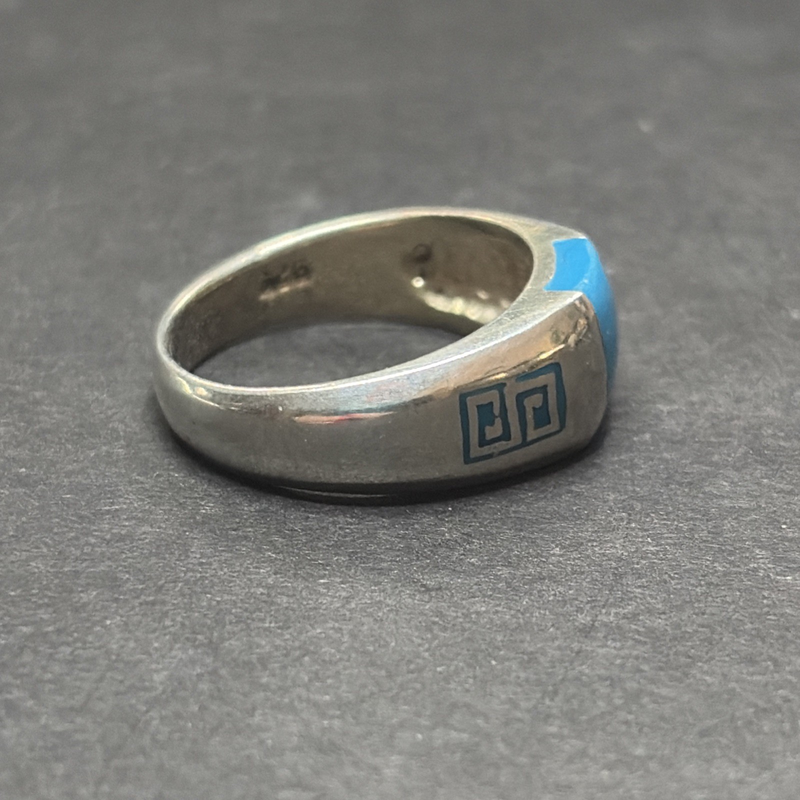 Vintage Sterling Silver Blue Greek Key Ring Size 7.75 Signed Marsala 925