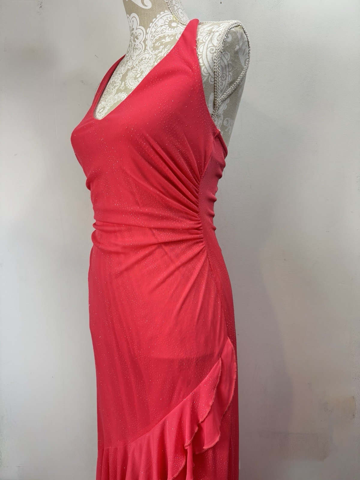 Vintage City Triangles Size Medium Pink Prom Dress Maxi Ruffle Gown Fairy Y2K