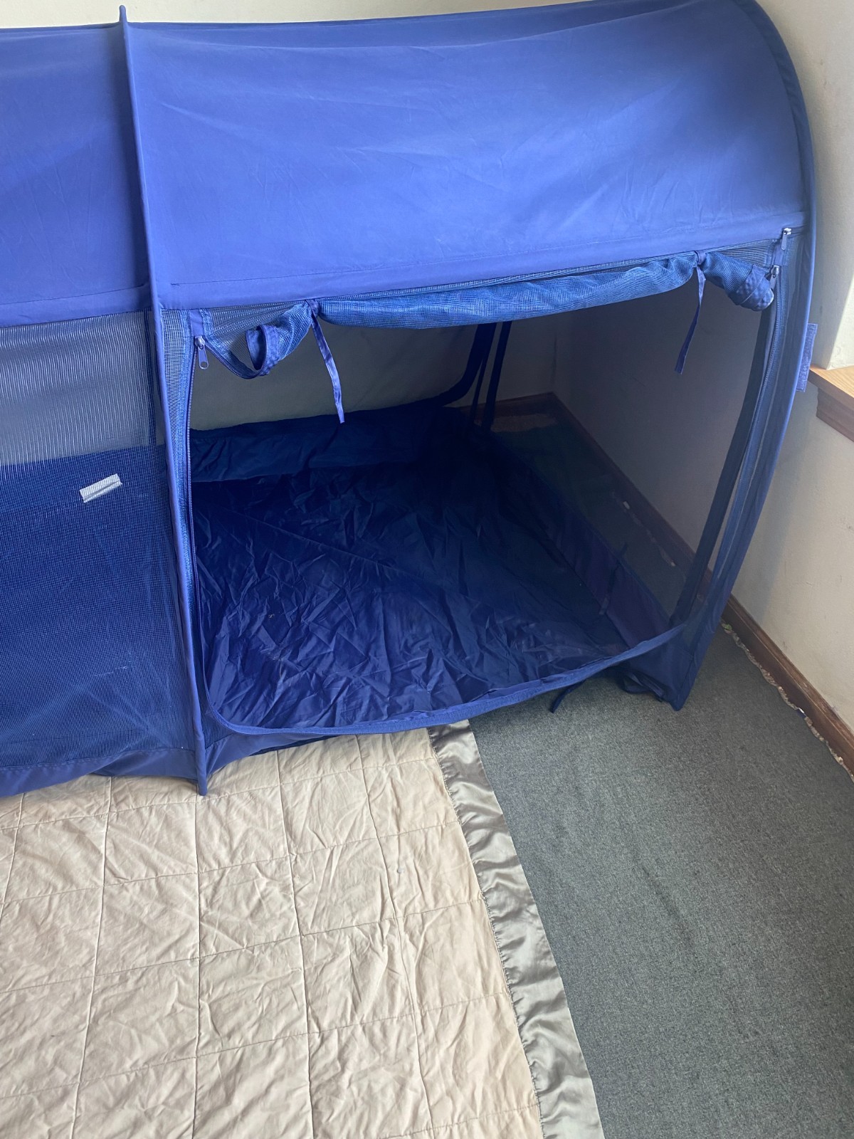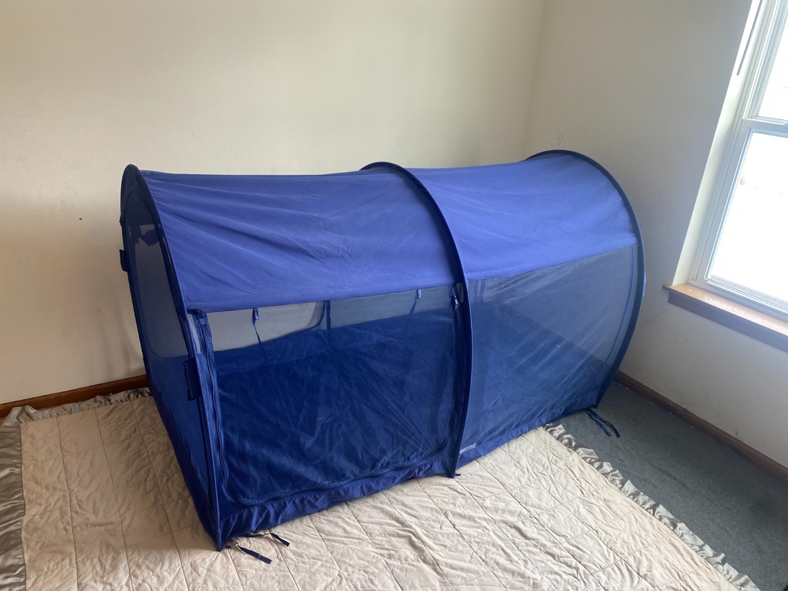 как выглядит Alvantor Mosquito Net Twin Size Bed Pop-up Portable Canopy Tent Navy Blue Mesh фото