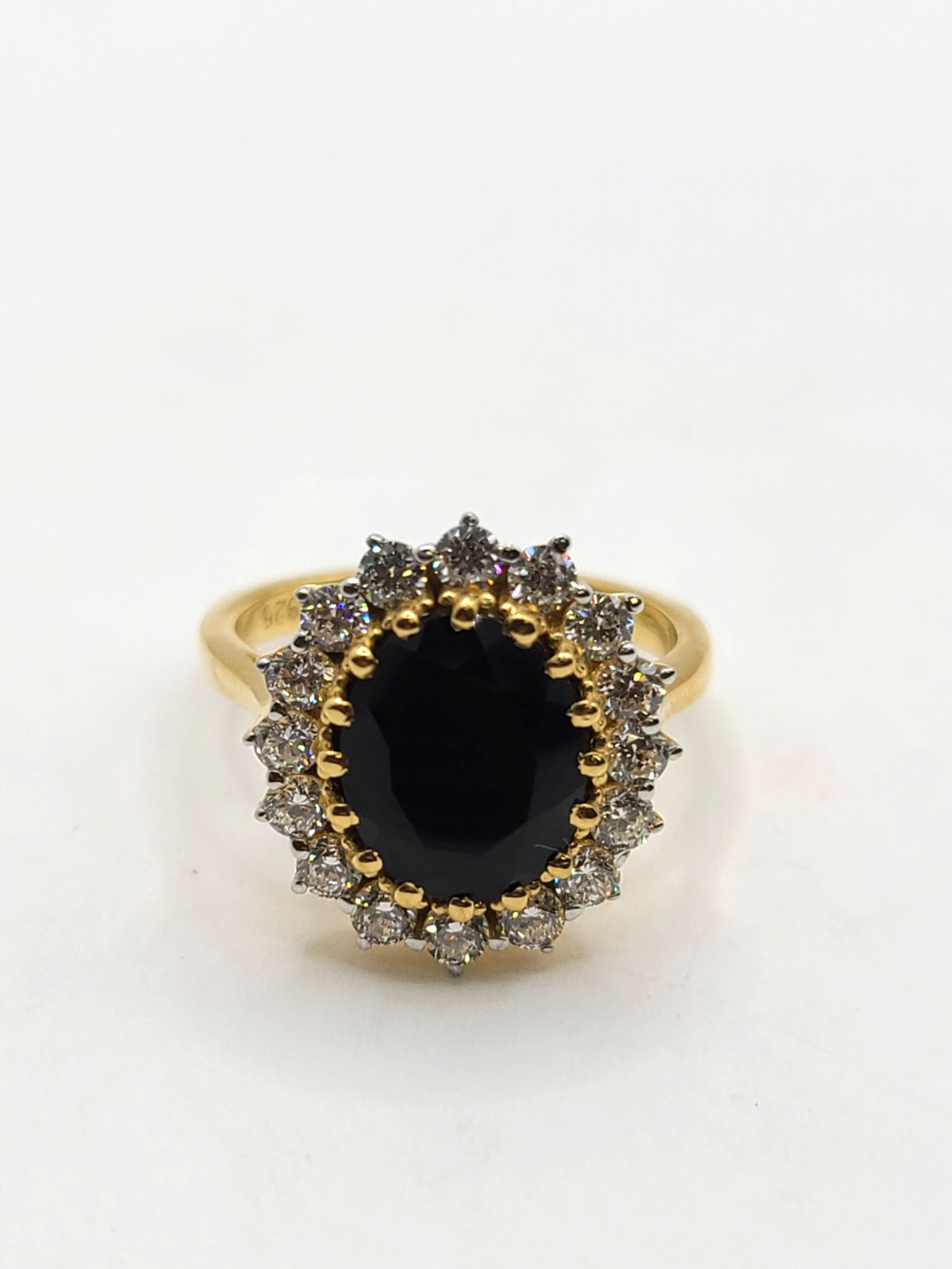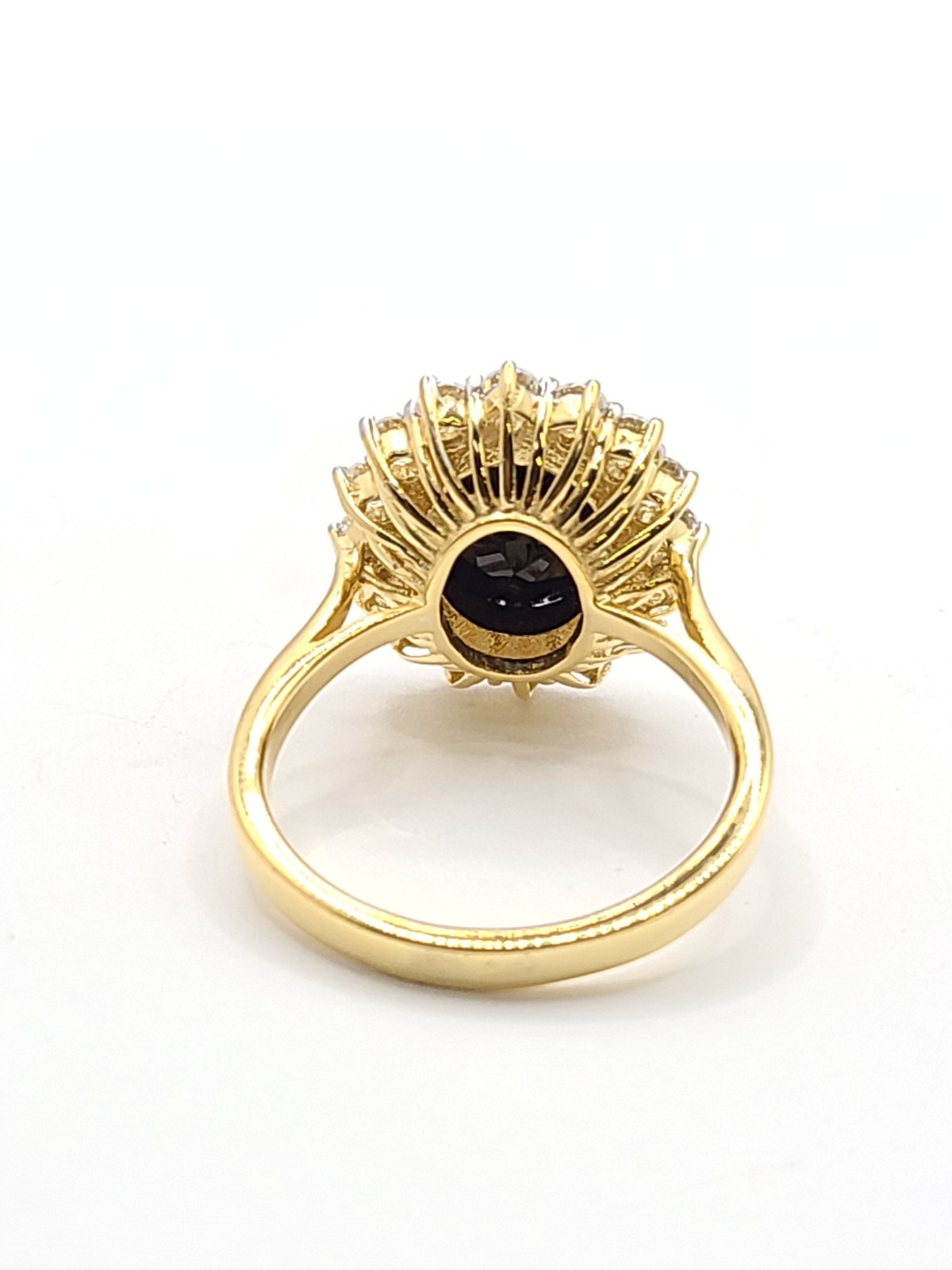 Black Onyx Crystal Ring, Silver 925, Real 18K Gold Filled sz 8