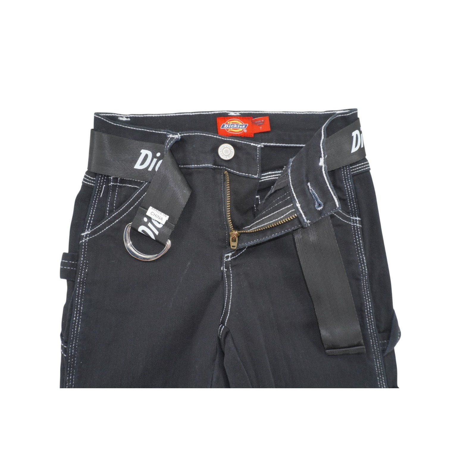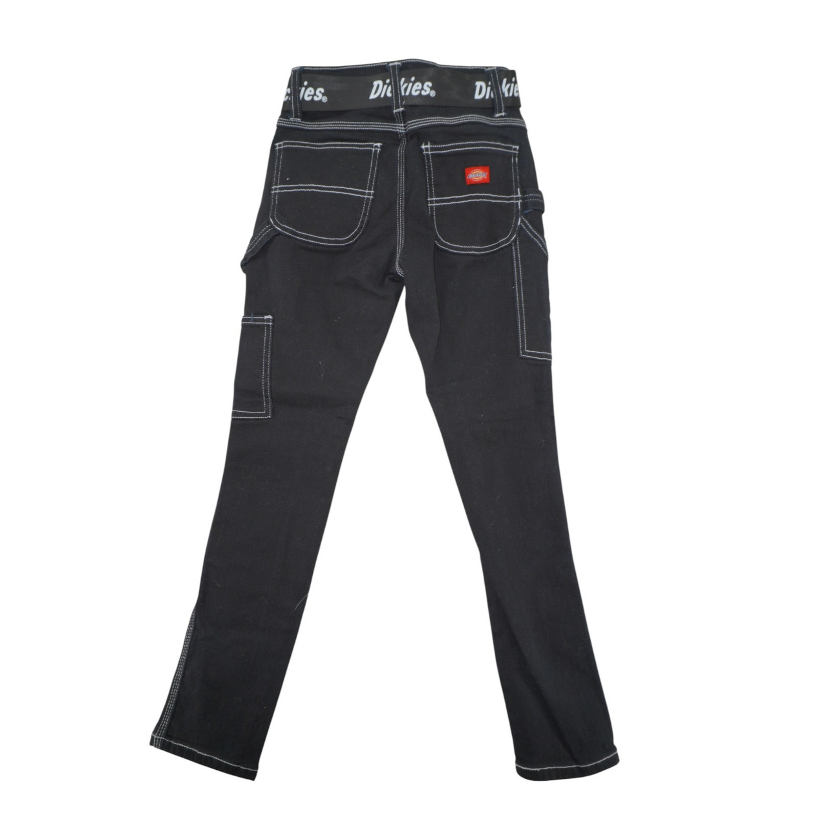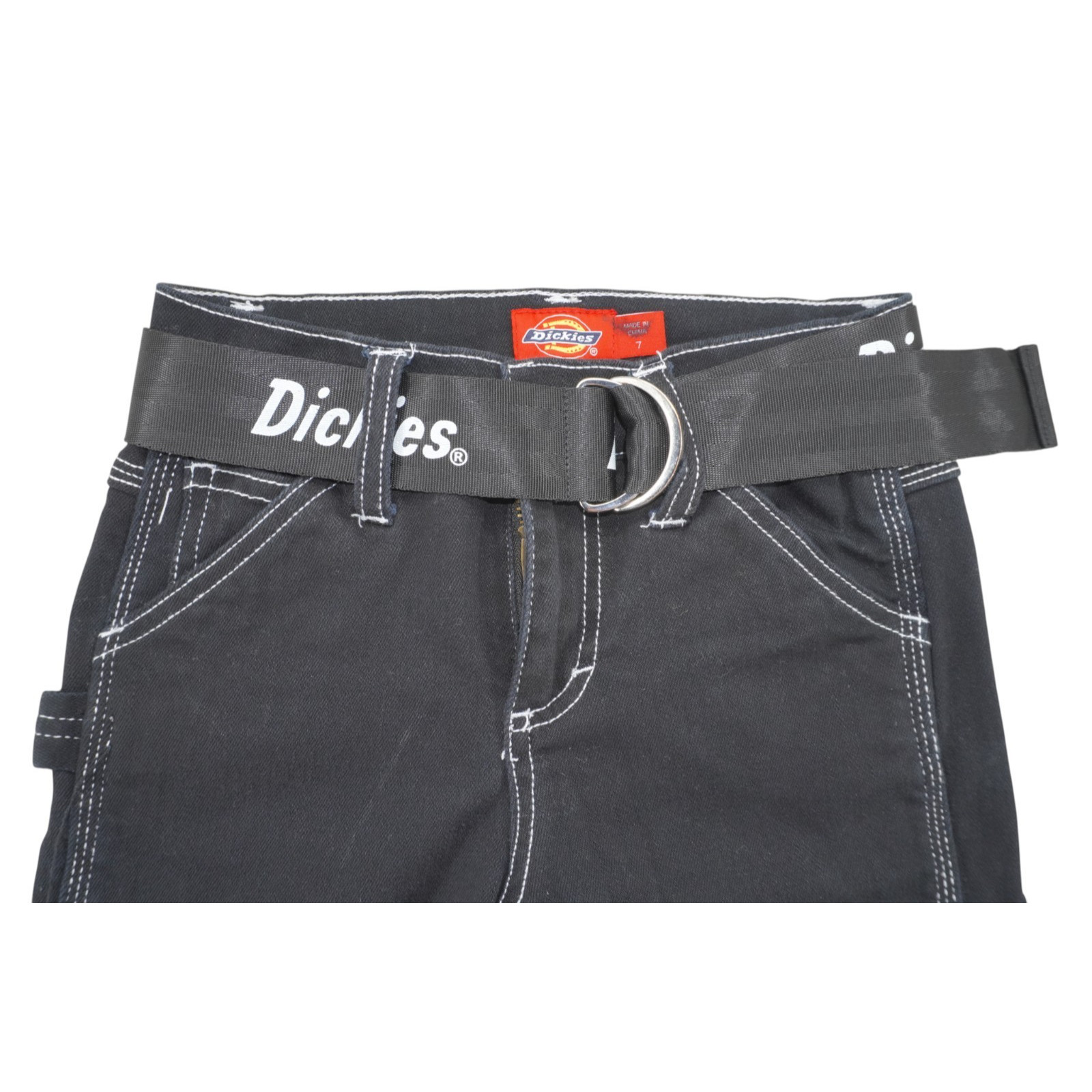 Dickies Youth Carpenter Pants Size 7 Black Contrast Stitch Logo Belt