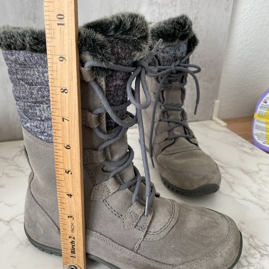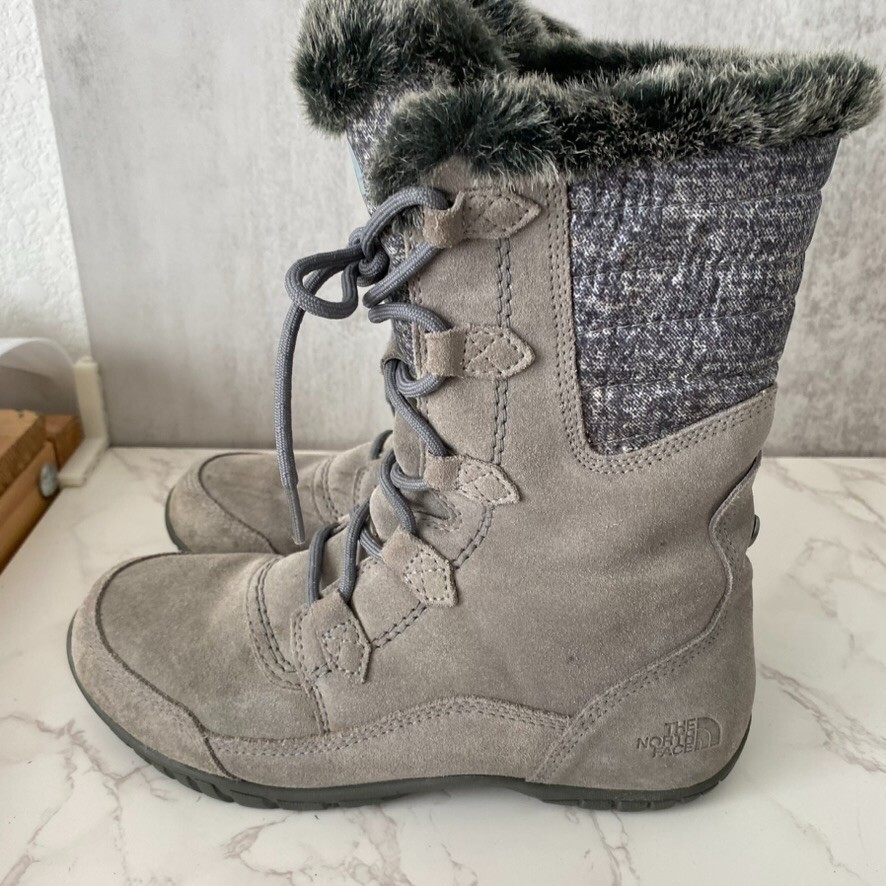 как выглядит The North Face Boots Womens Sz 7 Grey Fur Lined Suede Nuptse Purna II фото