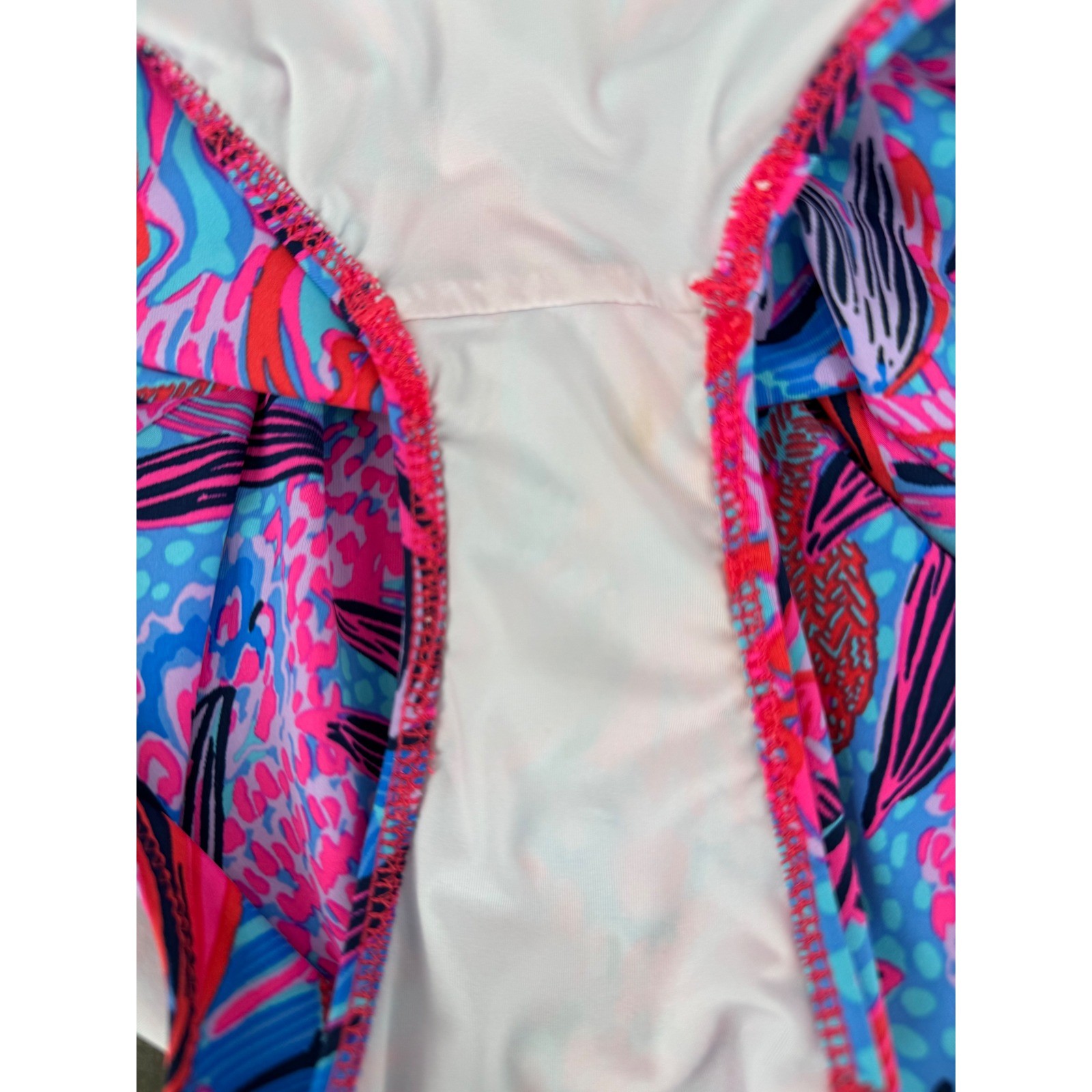 как выглядит Lilly Pulitzer Girls Pink Blue Tropical Floral Ruffle One Piece Swimsuit Size 12 фото