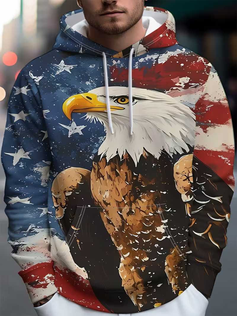как выглядит Bald Eagle Standing in Front of American Flag 3D Print Hoodie - Adults Youth фото