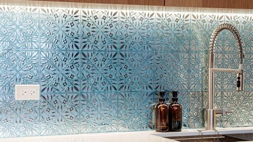 24-Pack of 8 x8 Peel and Stick Backsplash Wallpaper Teal and Silver Leaves