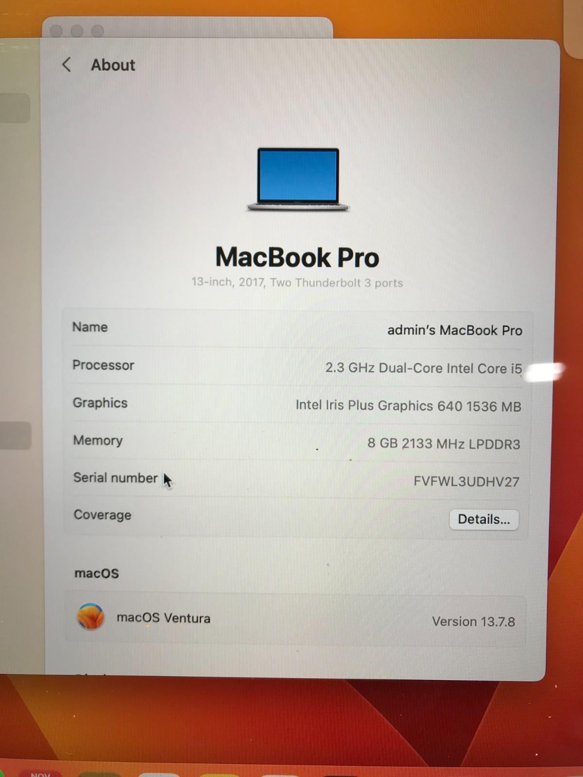 APPLE MACBOOK PRO MPXQ2LL/A I5-7360U 2.30 GHZ 128GB 8GB VENTURA