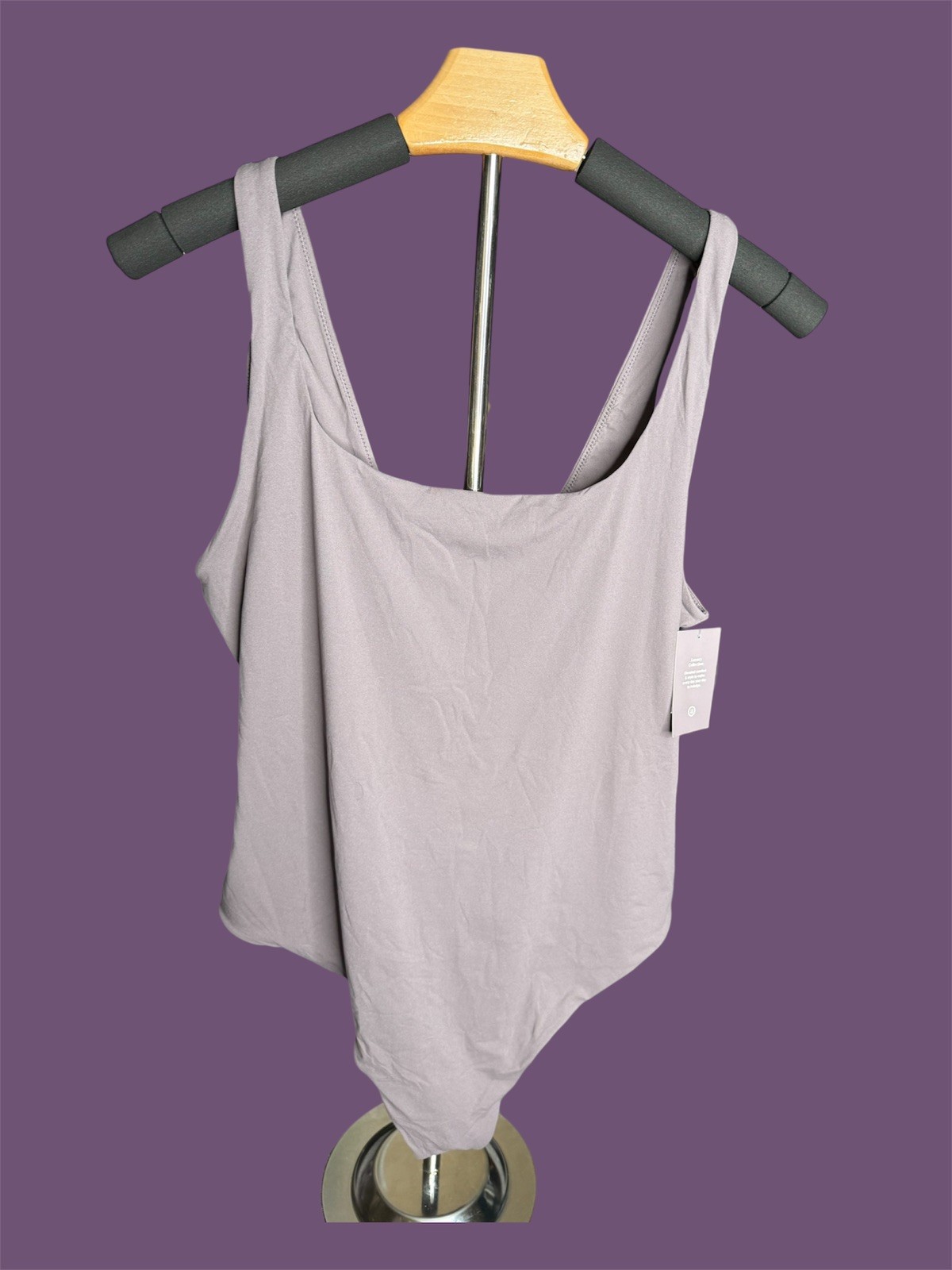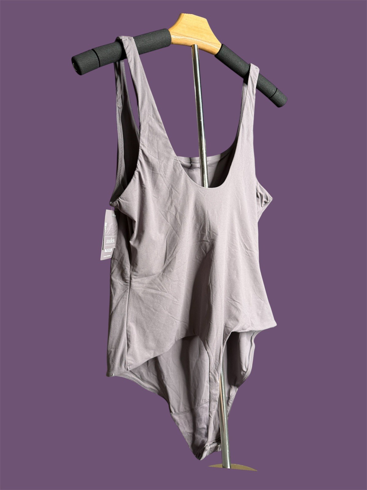 Auden Women's Luxe Stretch Highneck Racer Thong Bodysuit Mauve Gray Sz L NWT