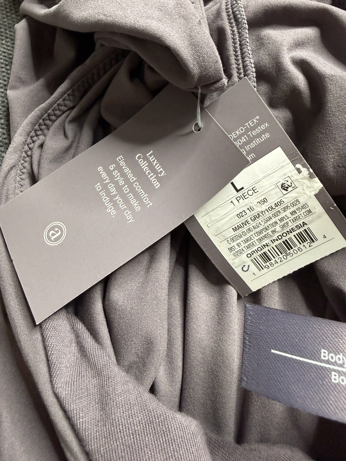 как выглядит Auden Womens Luxe Stretch Highneck Racer Thong Bodysuit Mauve Gray Sz L NWT фото