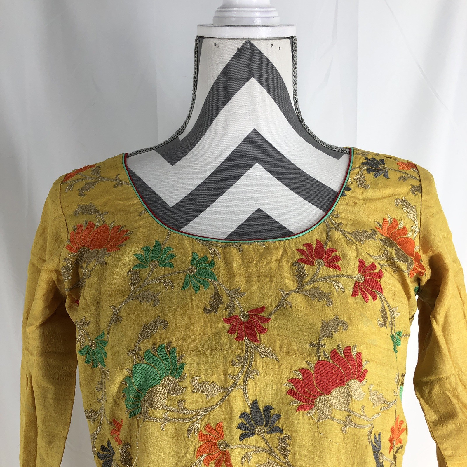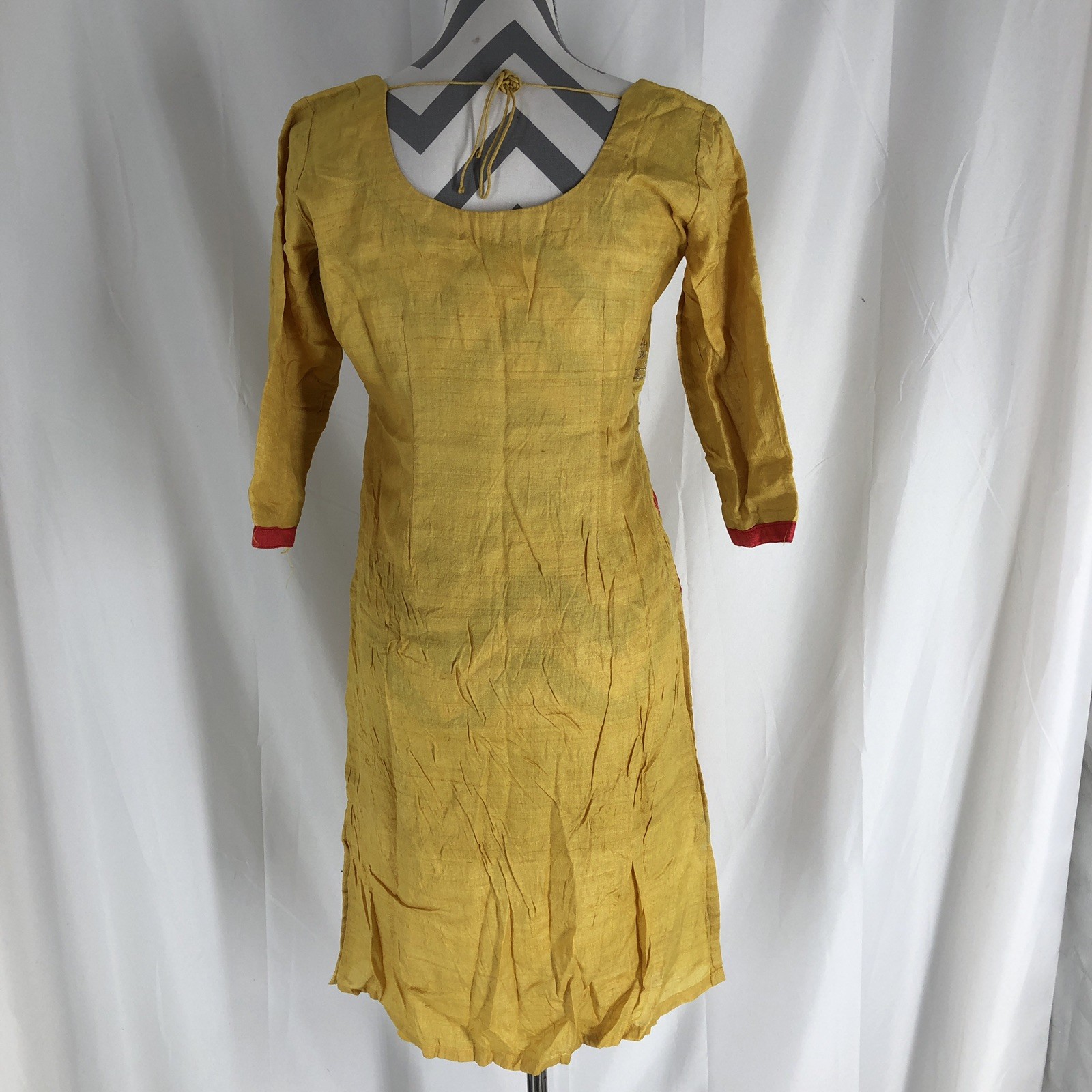 Indian Chikankari Pakistani KURTI 3/4 Yellow Embroidered Tunic Top Dress S