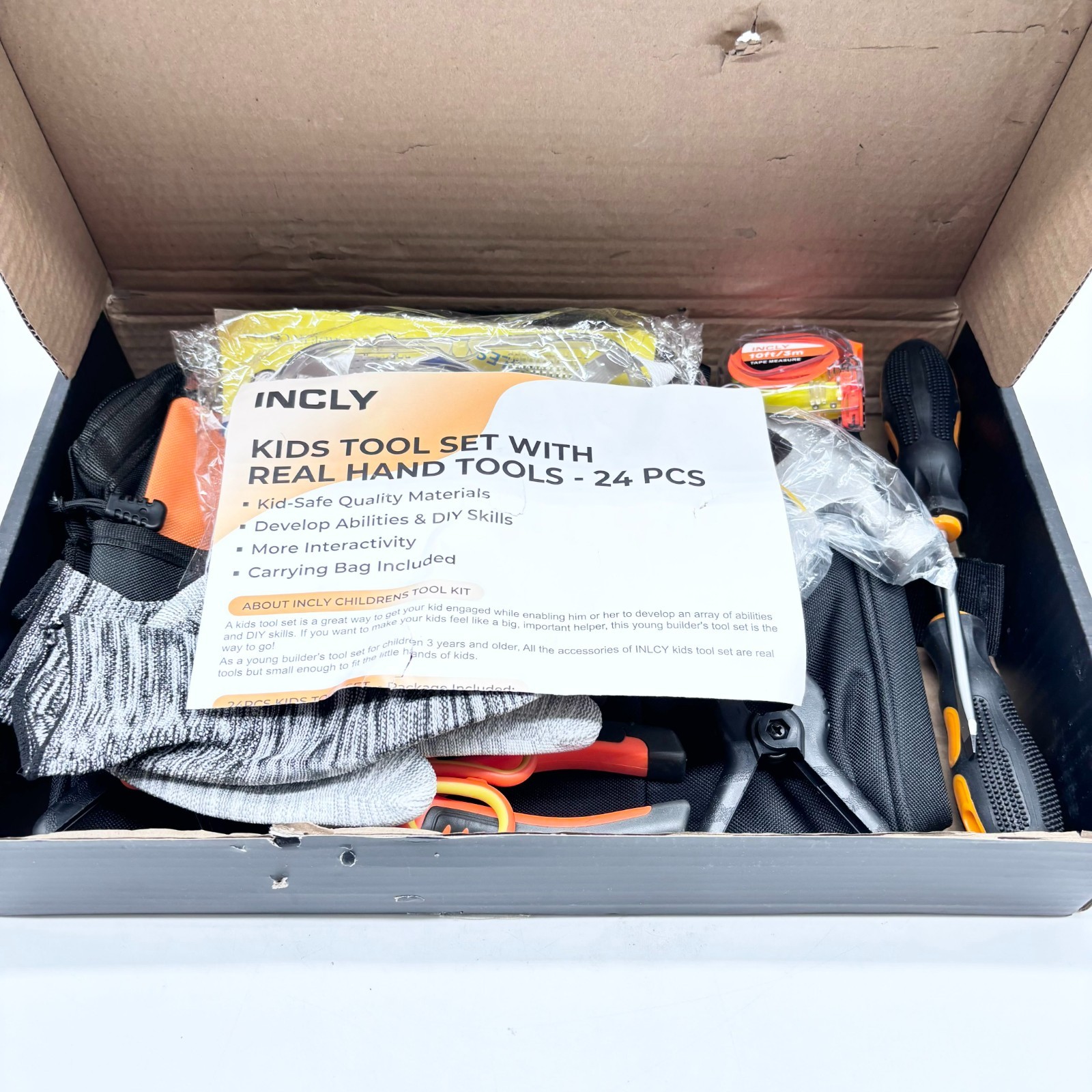 INCLY 24 Pieces Kid Tool Set With Real Hand Tools And Bags