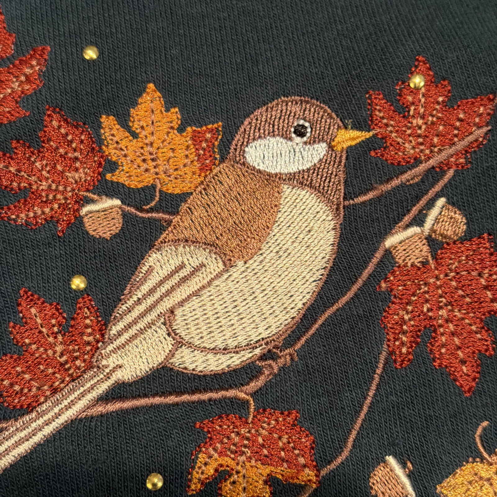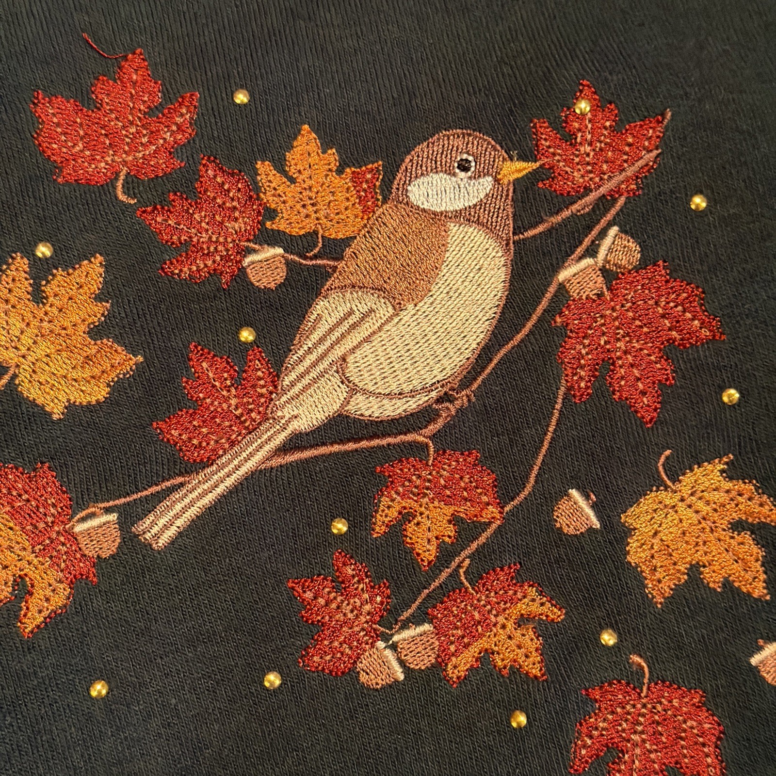 Hasting Smith Embroidered Bird and Leaves Sweatshirt Granny Core Sz MED