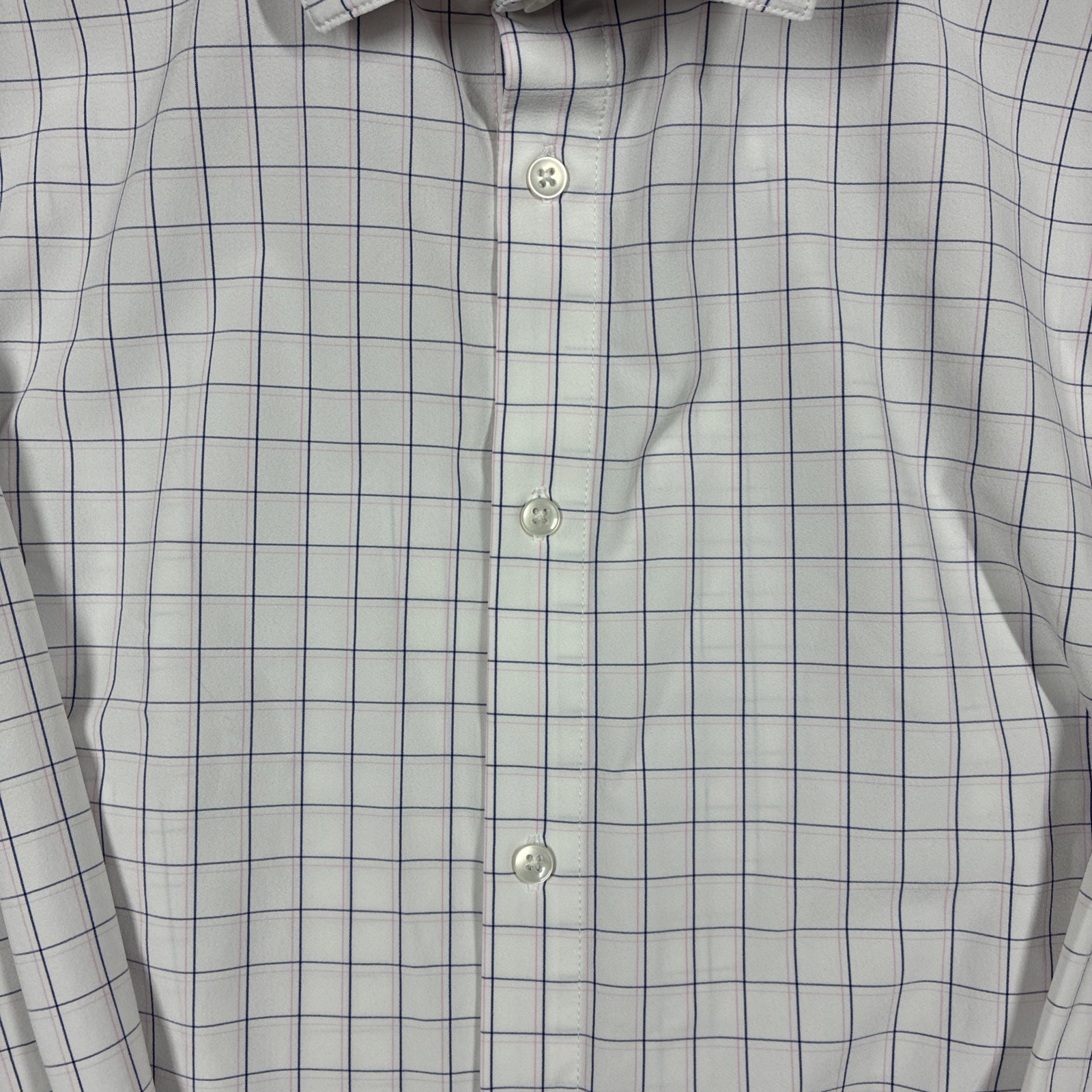 Mizzen Main Leeward Collection Pink White Grid Dress Shirt Mens Large Trim Fit