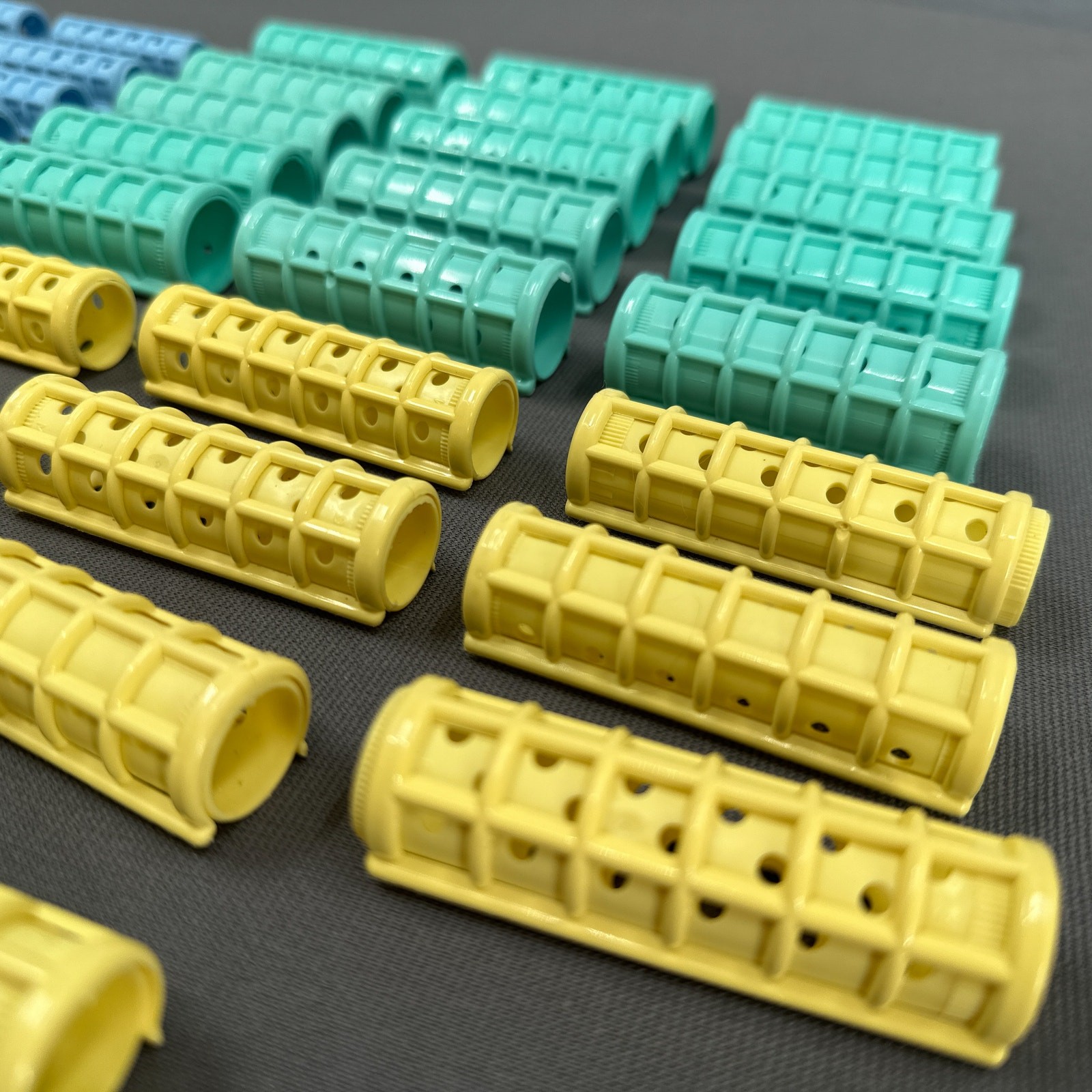 как выглядит VTG Lot of 38 Plastic Hair Curlers Snap On Holders Rollers MCM USA Retro Granny фото