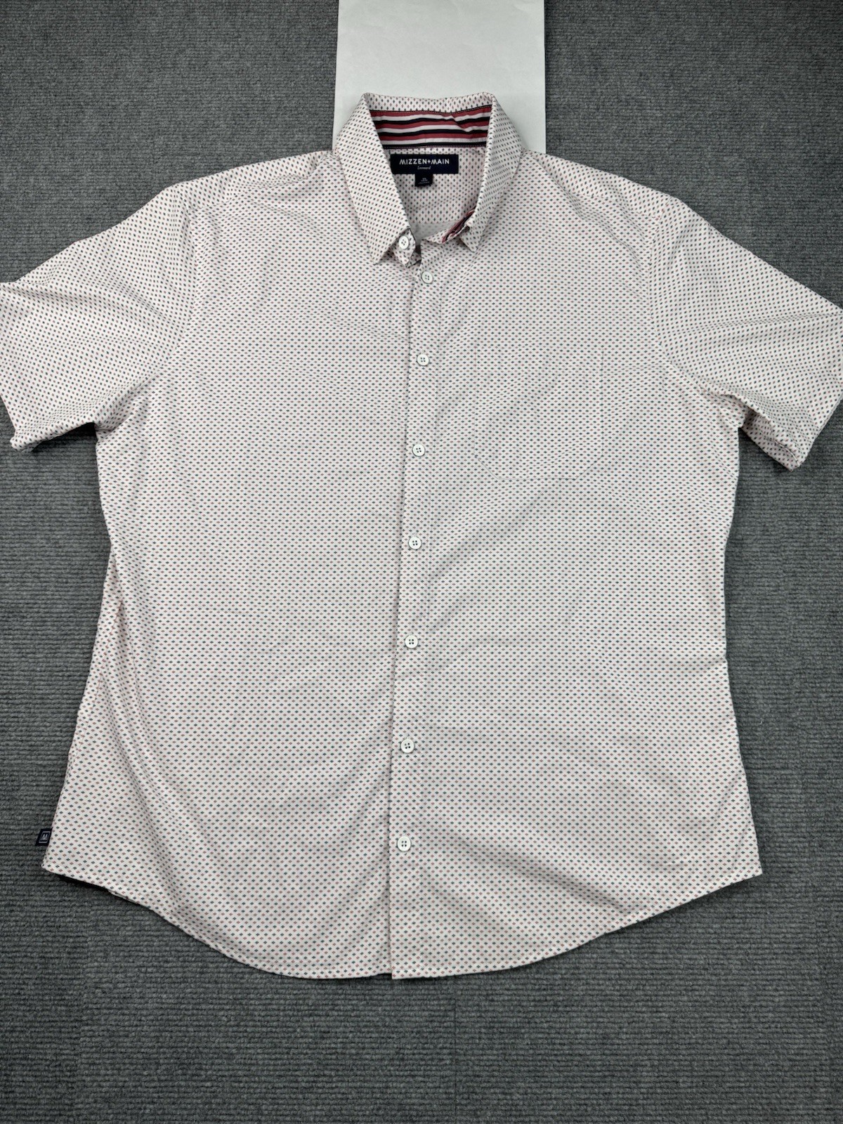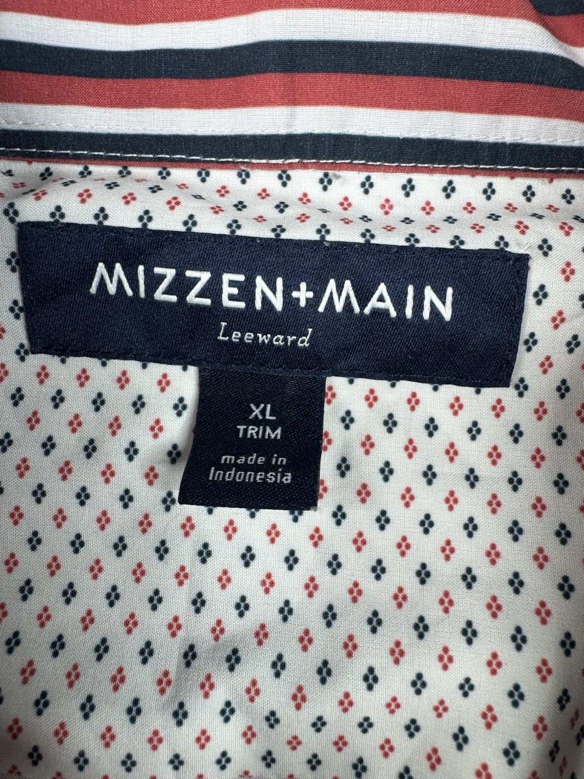как выглядит Mizzen Main Leeward Shirt Mens XL Trim Fit Short Sleeve Button Down Geometric фото