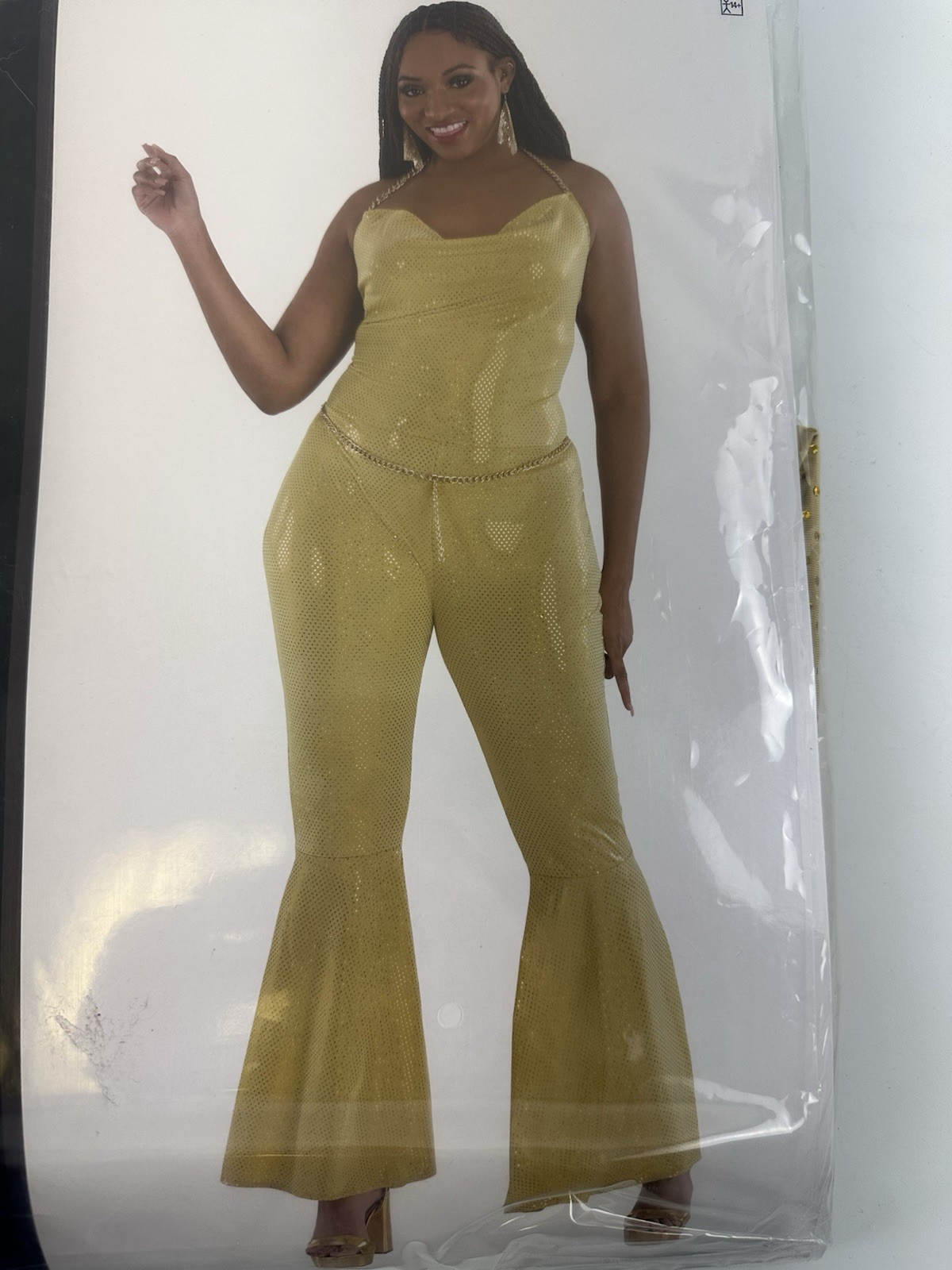 Disco Jumpsuit Costume Gold Yellow Sequin Flare Leg Womens Adult Plus 18-20 New