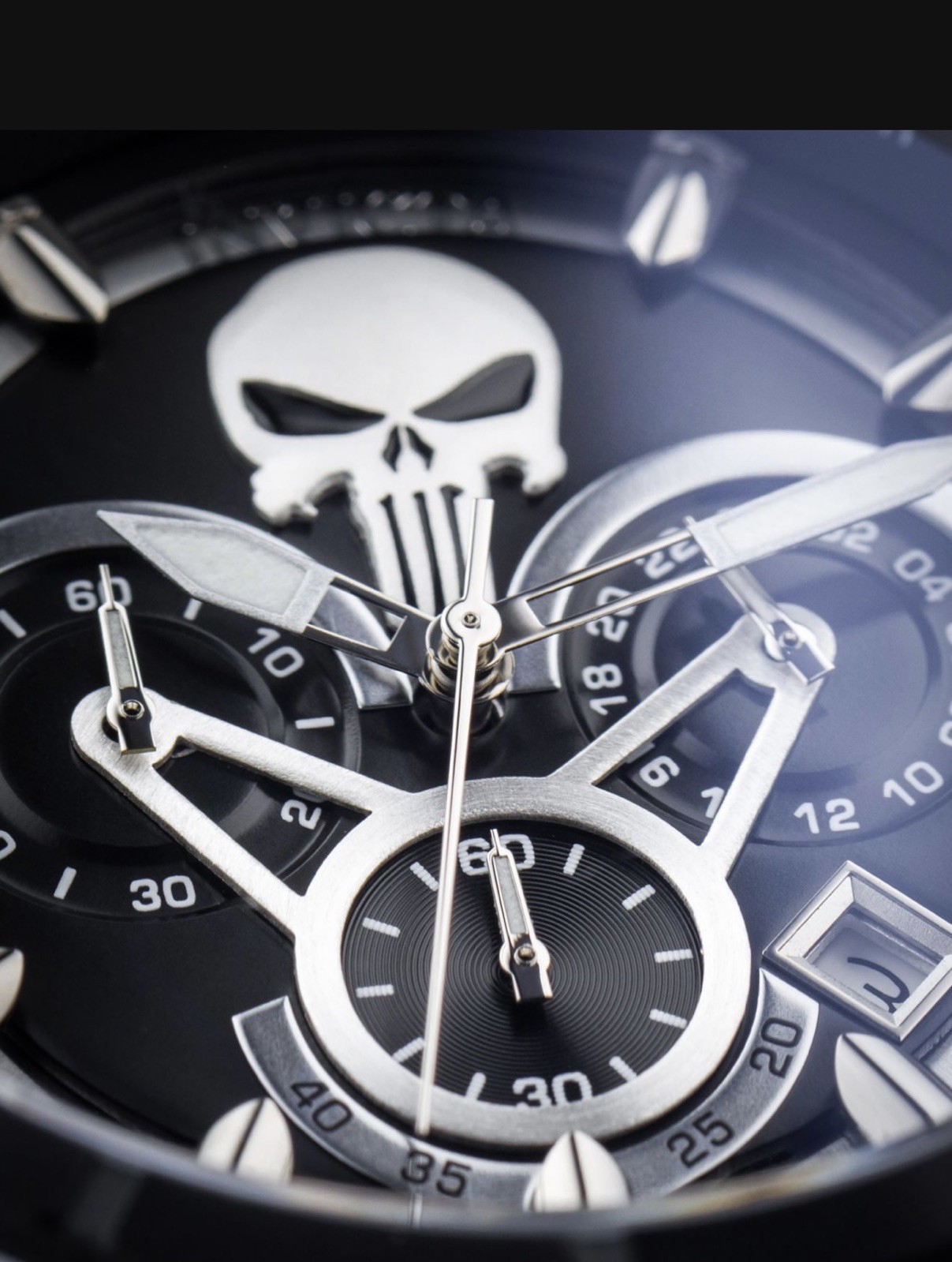 как выглядит Invicta Marvel Punisher Chronograph 52mm Black/Silver Stainless Steel Case with фото