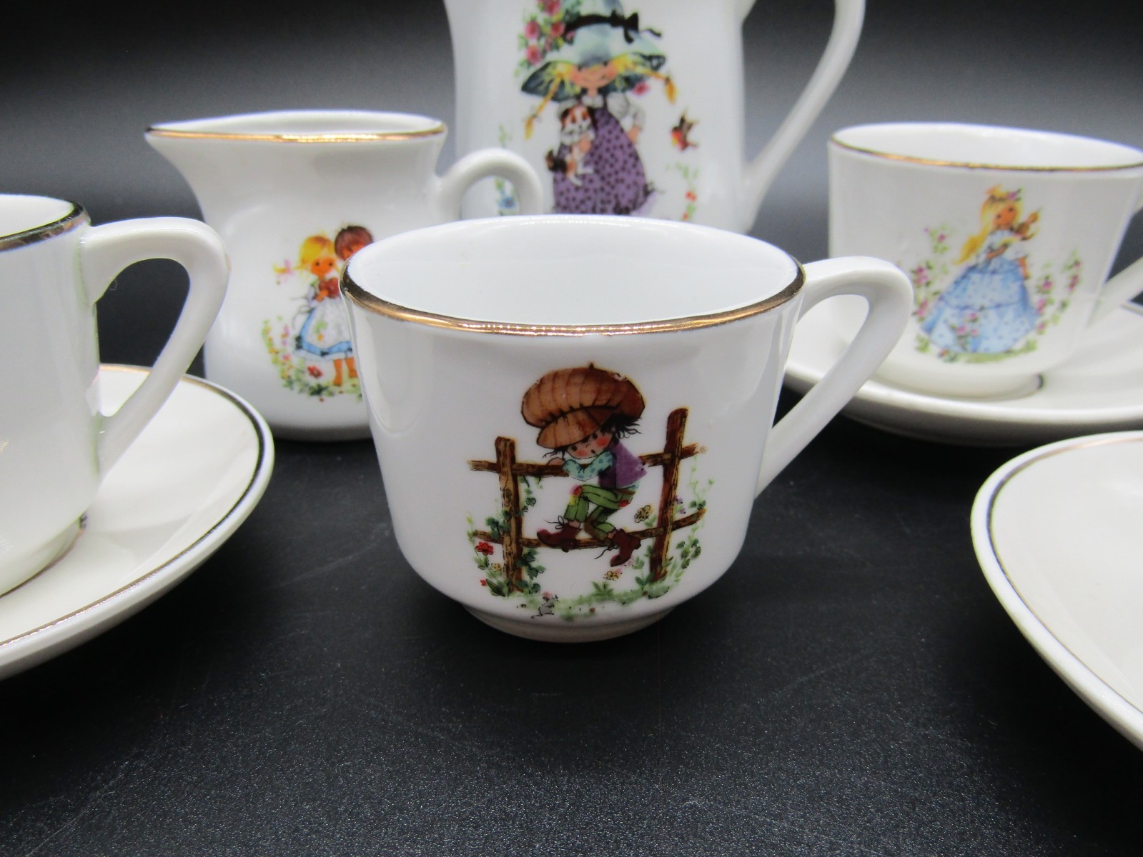 Vintage Children s Holly Hobbie Porcelain China Dinner Tea Set 9 Piece