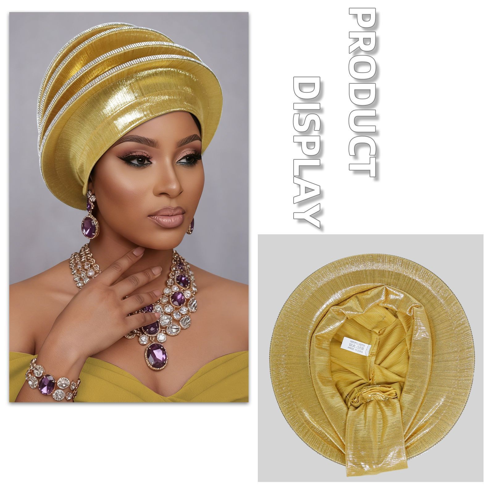 Multilayer Shining Diamonds Women African Headtie Beret Turban Cap Auto Gele Hat