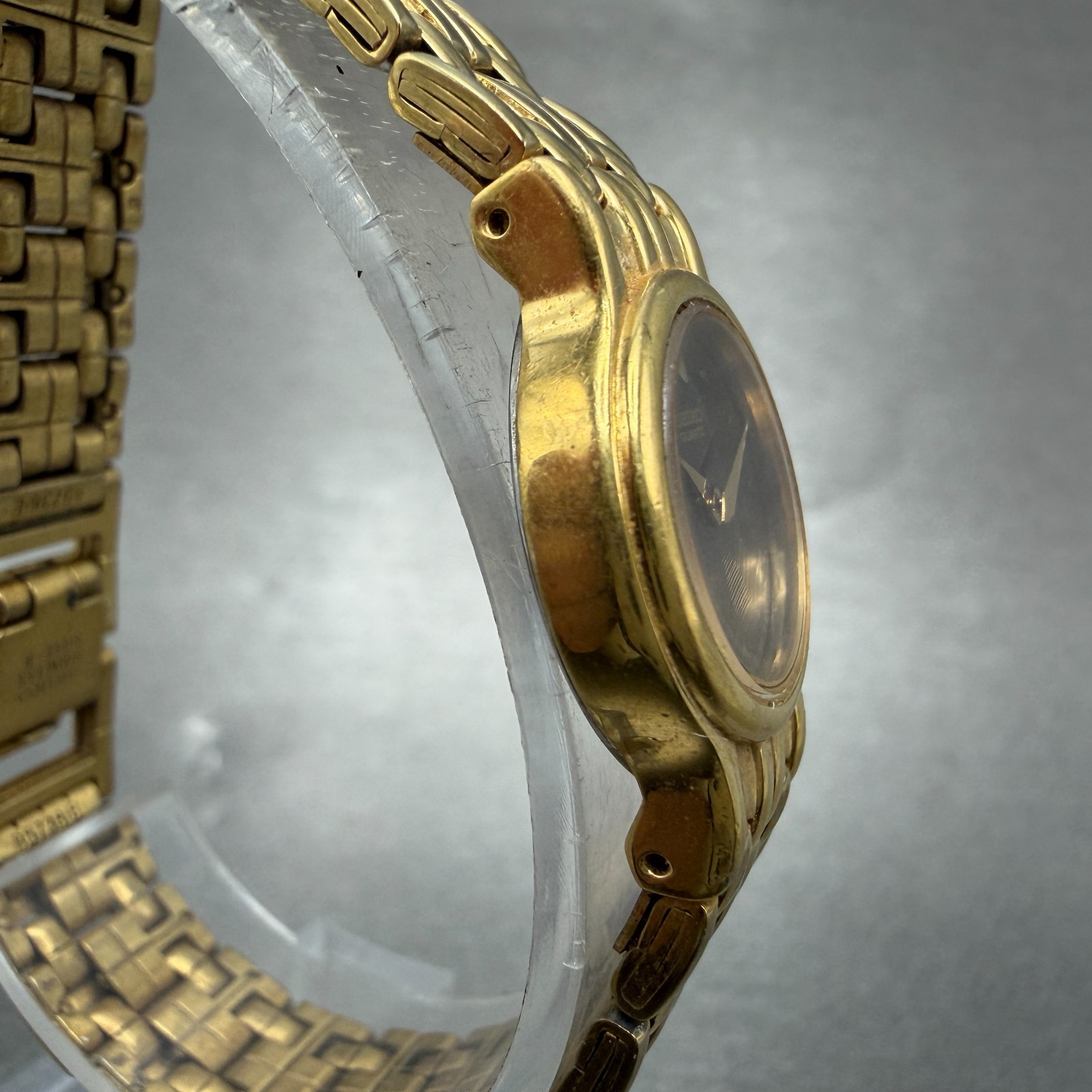 как выглядит Seiko Watch Women 19mm Black Dial gold Tone Round V400-0538 New Battery Vintage фото