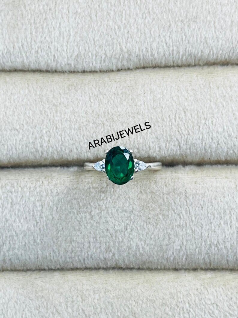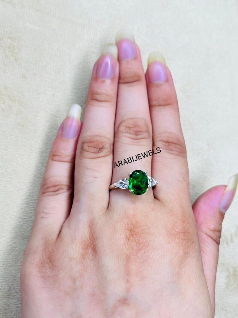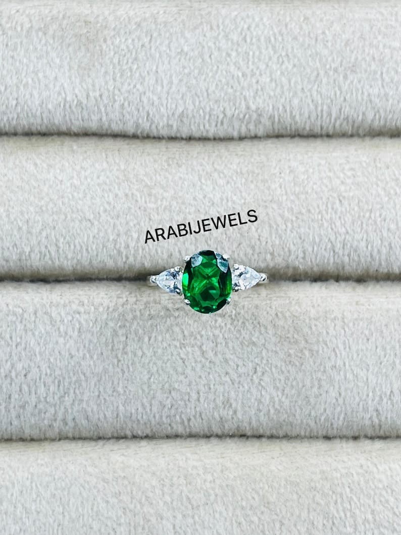 Oval Cut Emerald Ring 925 Sterling Silver Gift For Her Halo Engagement Ring.