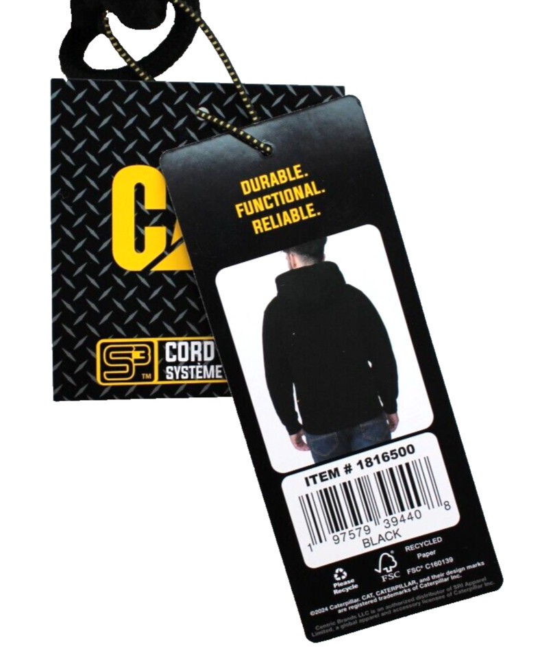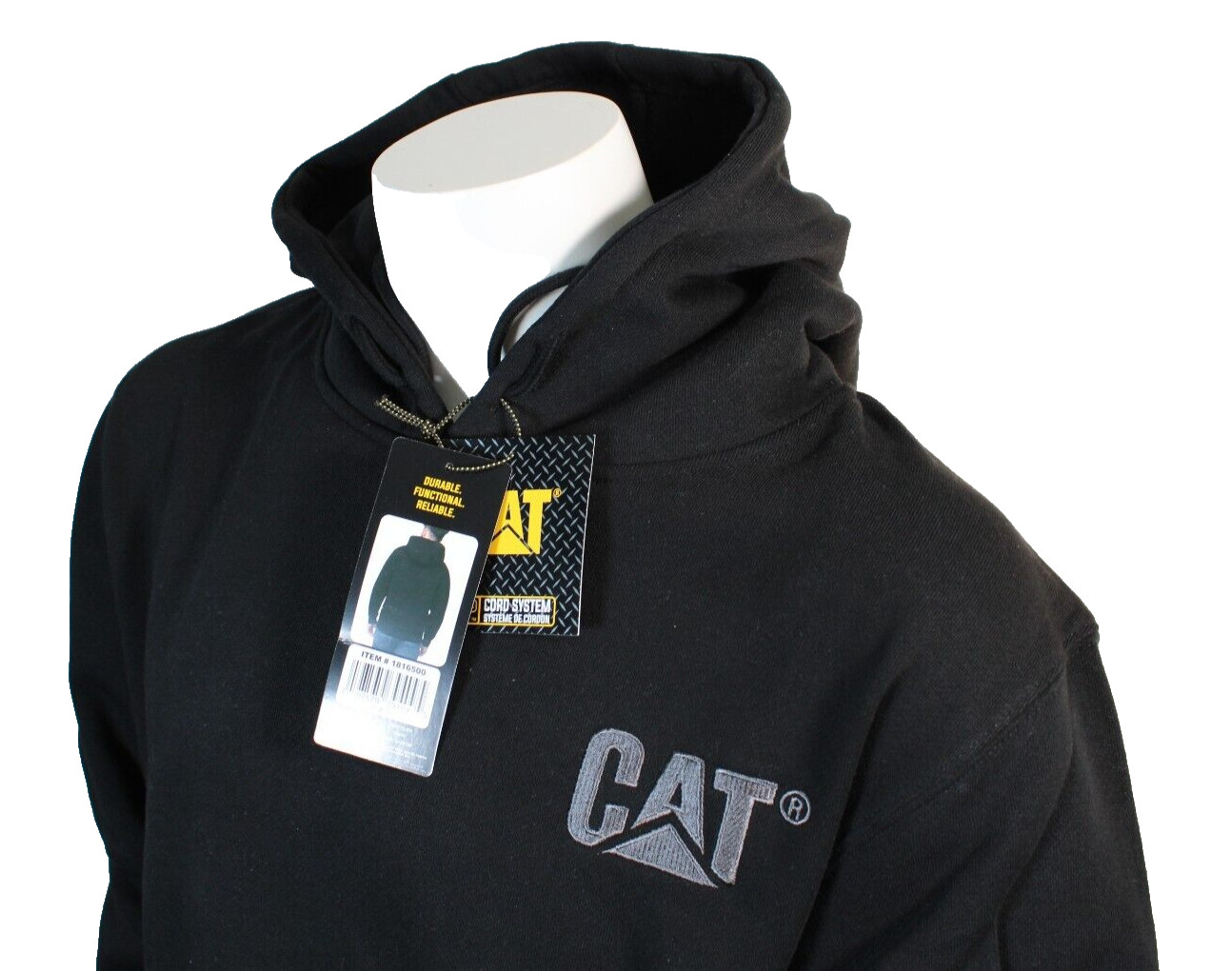 New CATERPILLAR Size L Black / Gray Stitched Logo Heavyweight Hoodie Sweatshirt