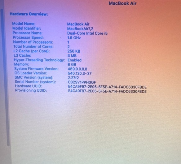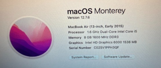 2015 Apple MacBook Air 256GB SSD, Intel Core i5 5th. Gen., 1.6GHz, 8GB RAM
