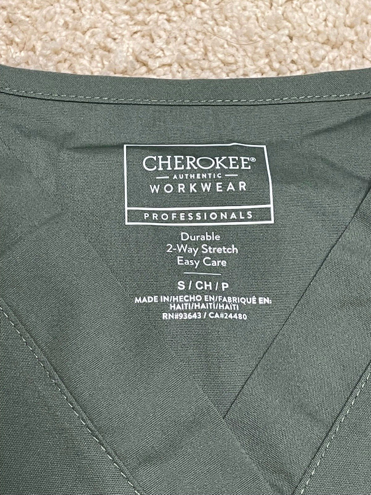 как выглядит Cherokee Small Scrub Top Olive Green Workwear Professionals Women