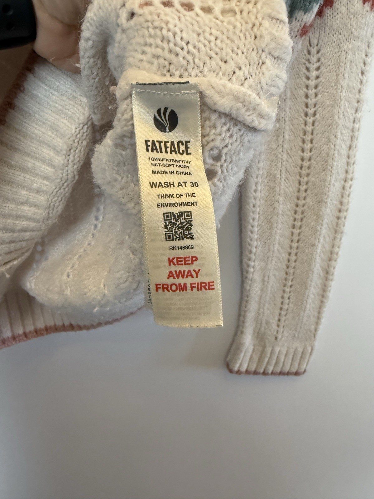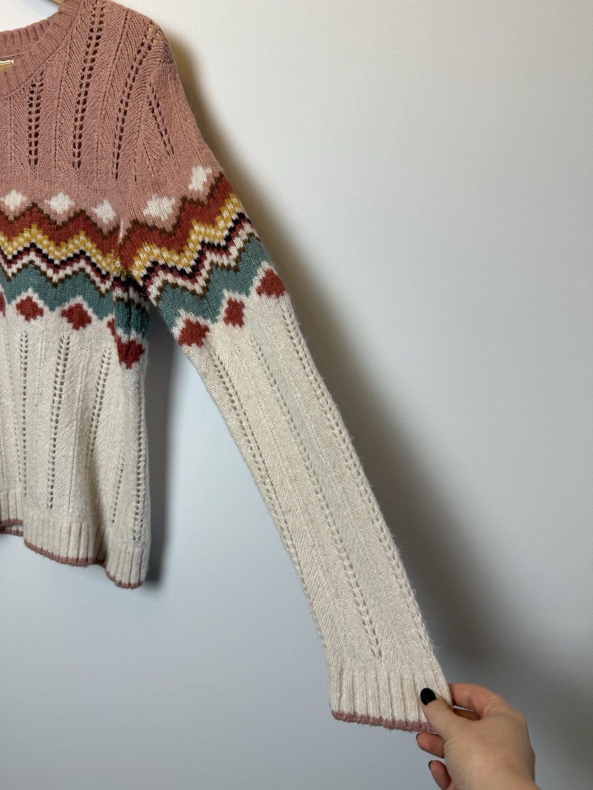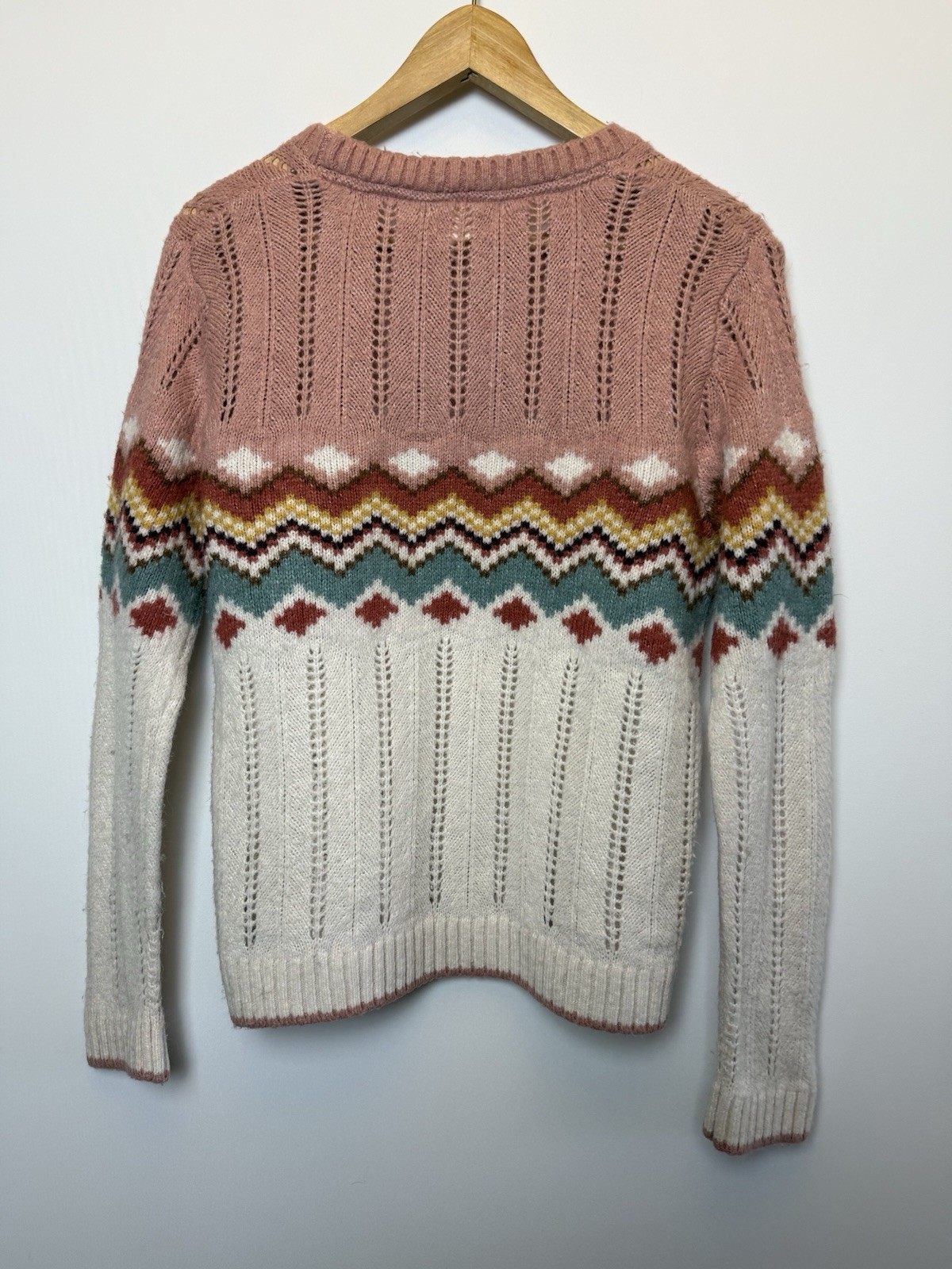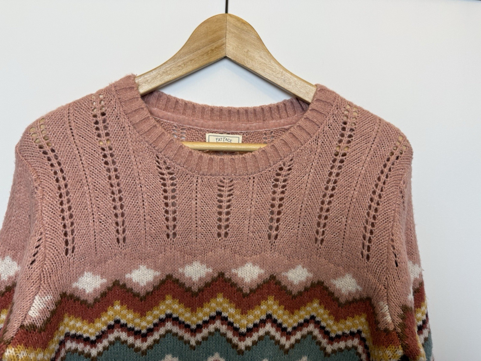 как выглядит Fat Face UK 8 Jumper Ivory Coral Soft Pointelle Knit Fair Isle Alpaca Mix фото