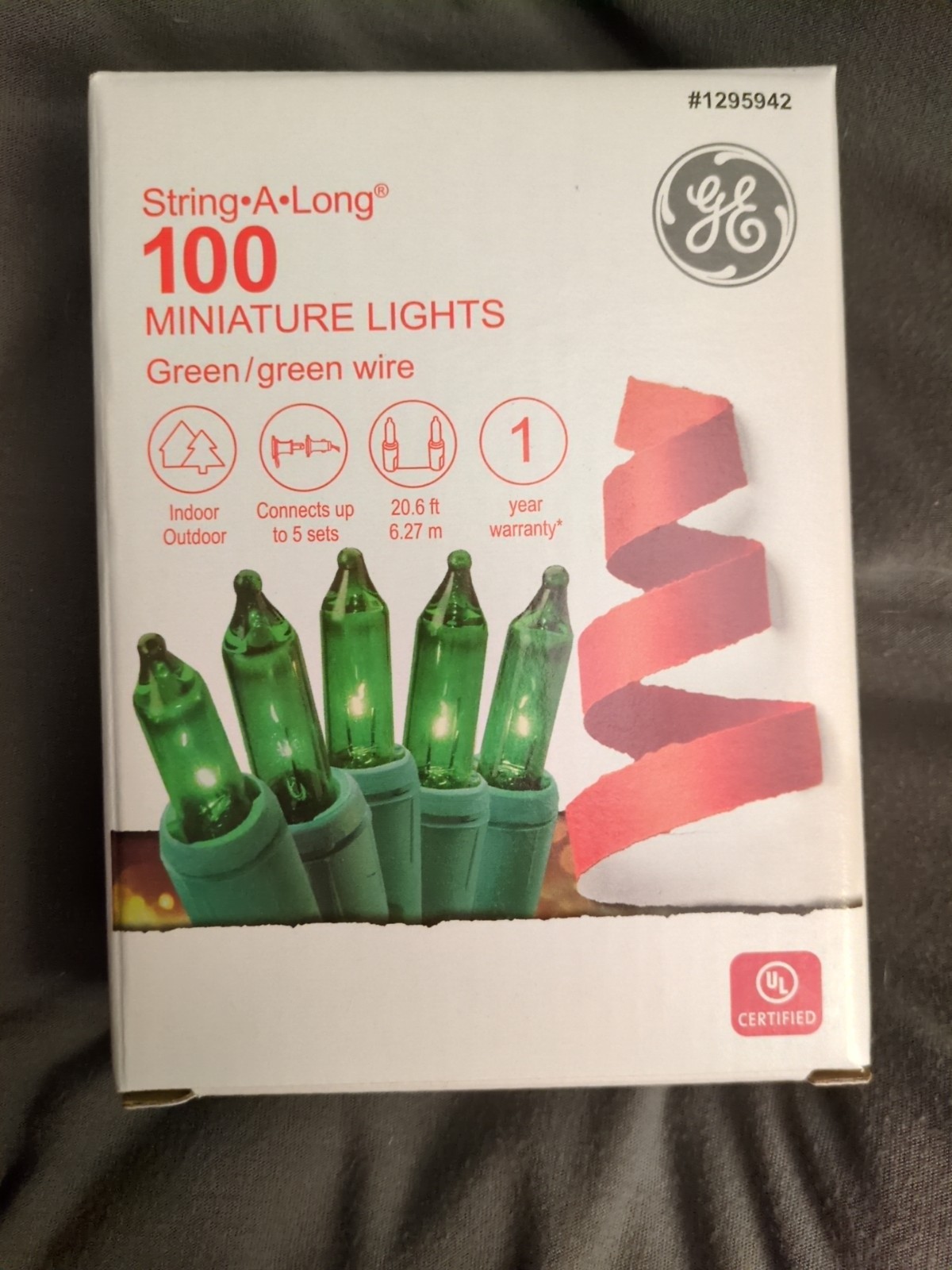 GE String-A-Long Miniature Christmas String Lights 100 Light Set Green New