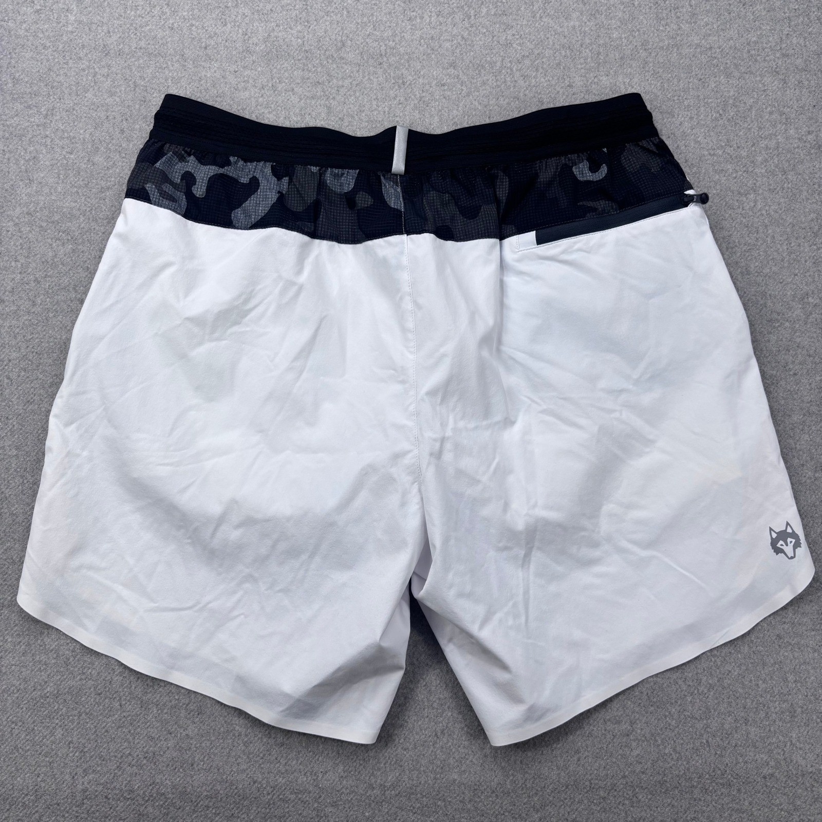 Greyson Running Wolf Shorts Mens M 6 Inseam White Black Camo Lined Performance