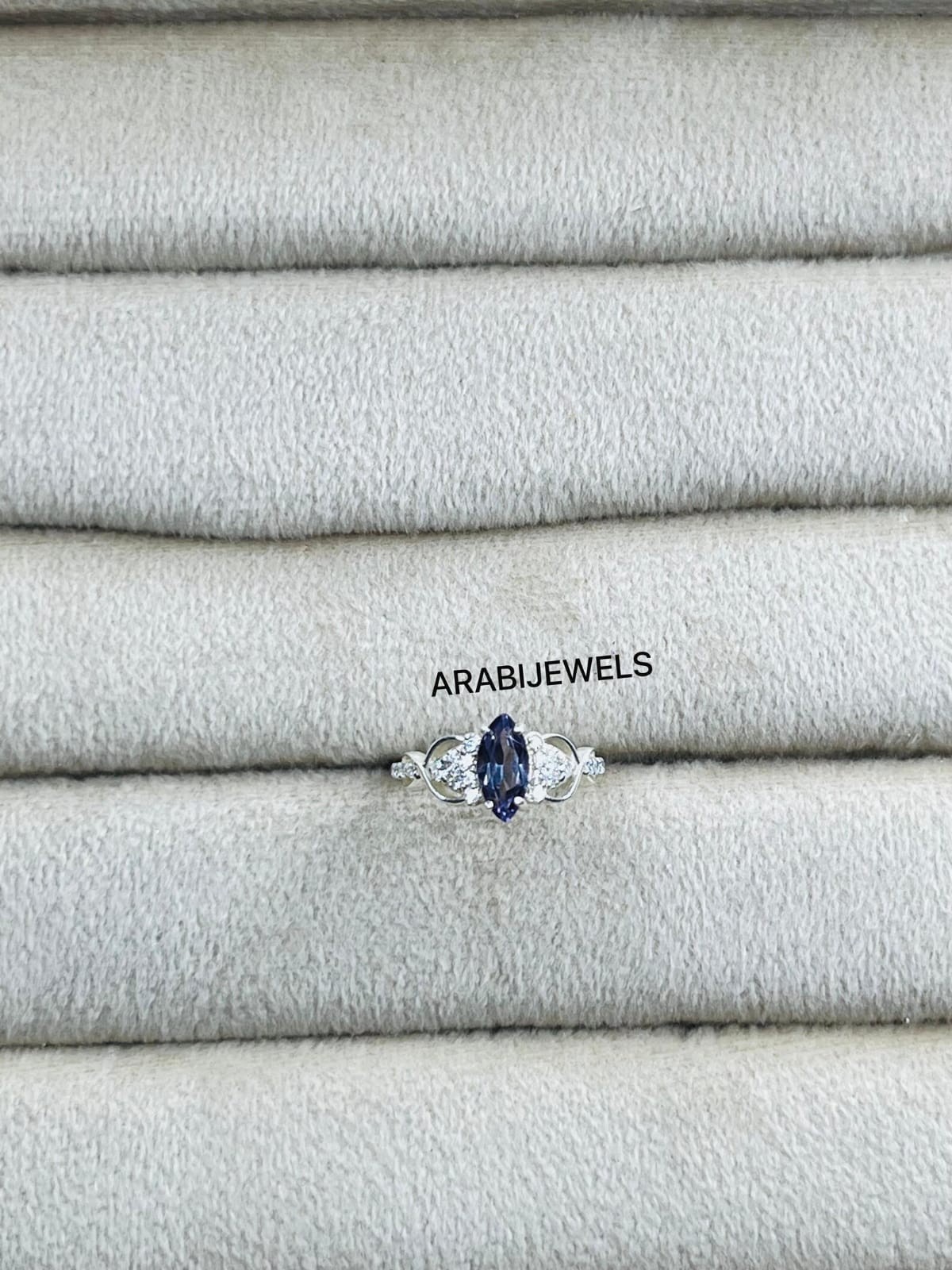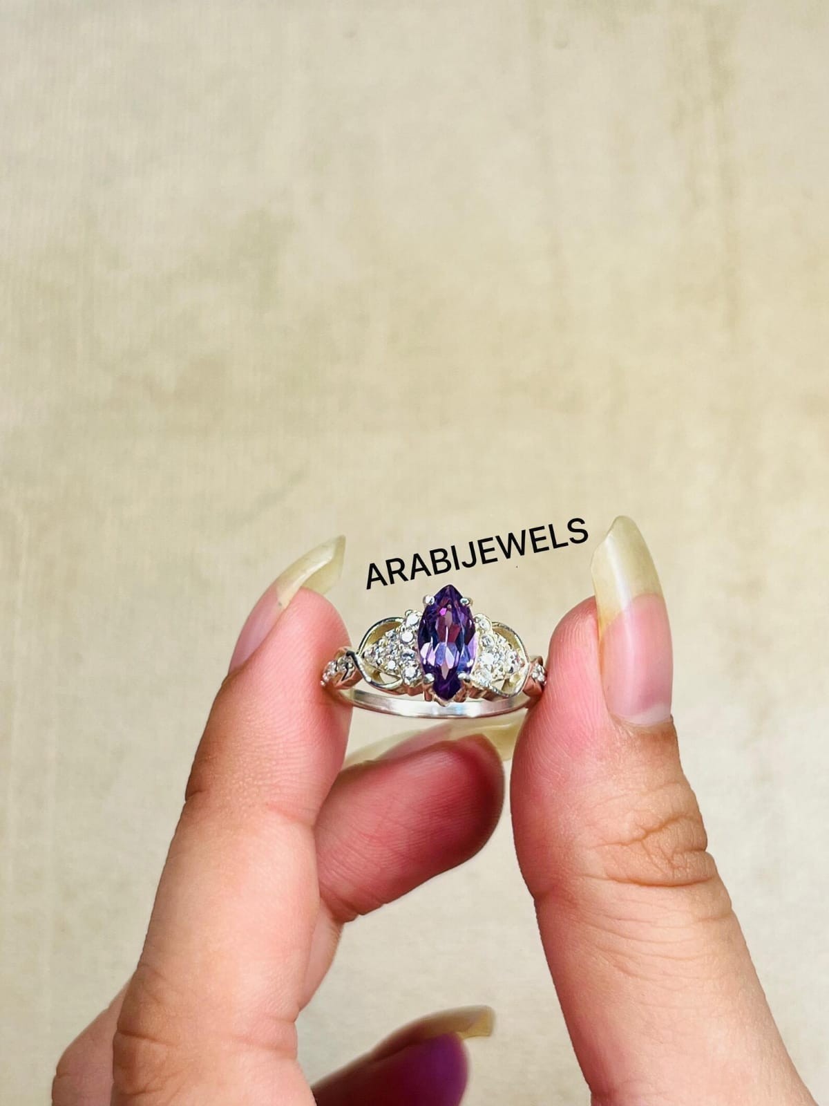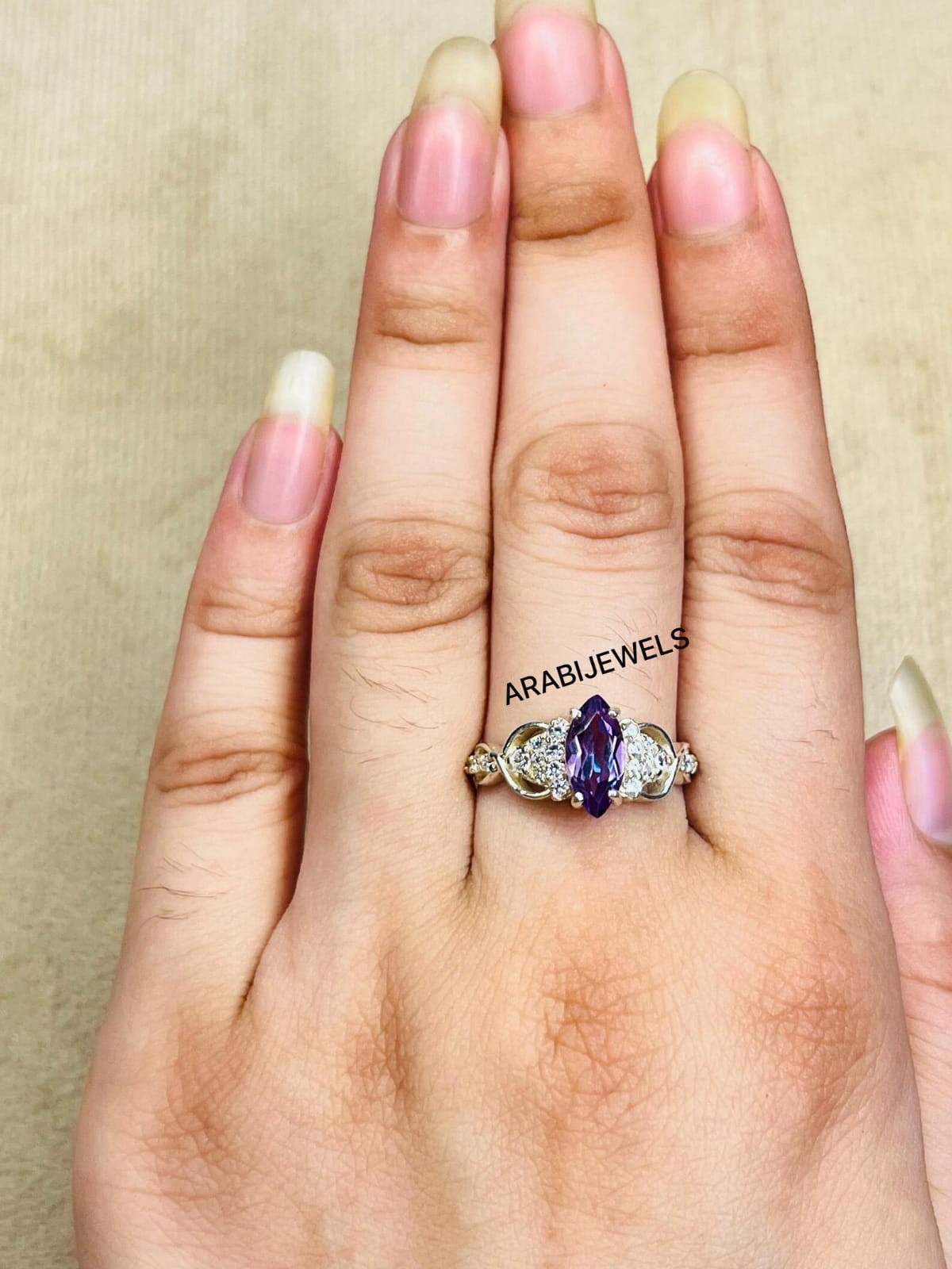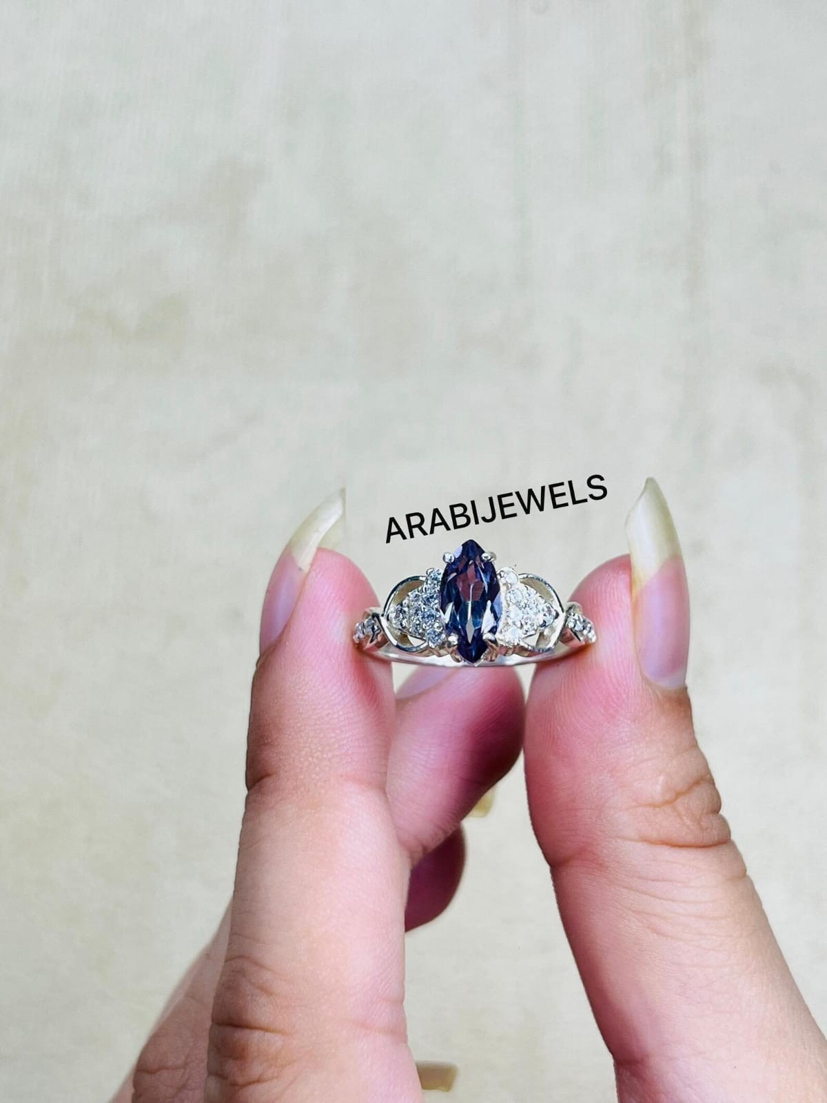 как выглядит Marquise Cut Alexandrite Ring 925 Sterling Silver Gift For Her. фото