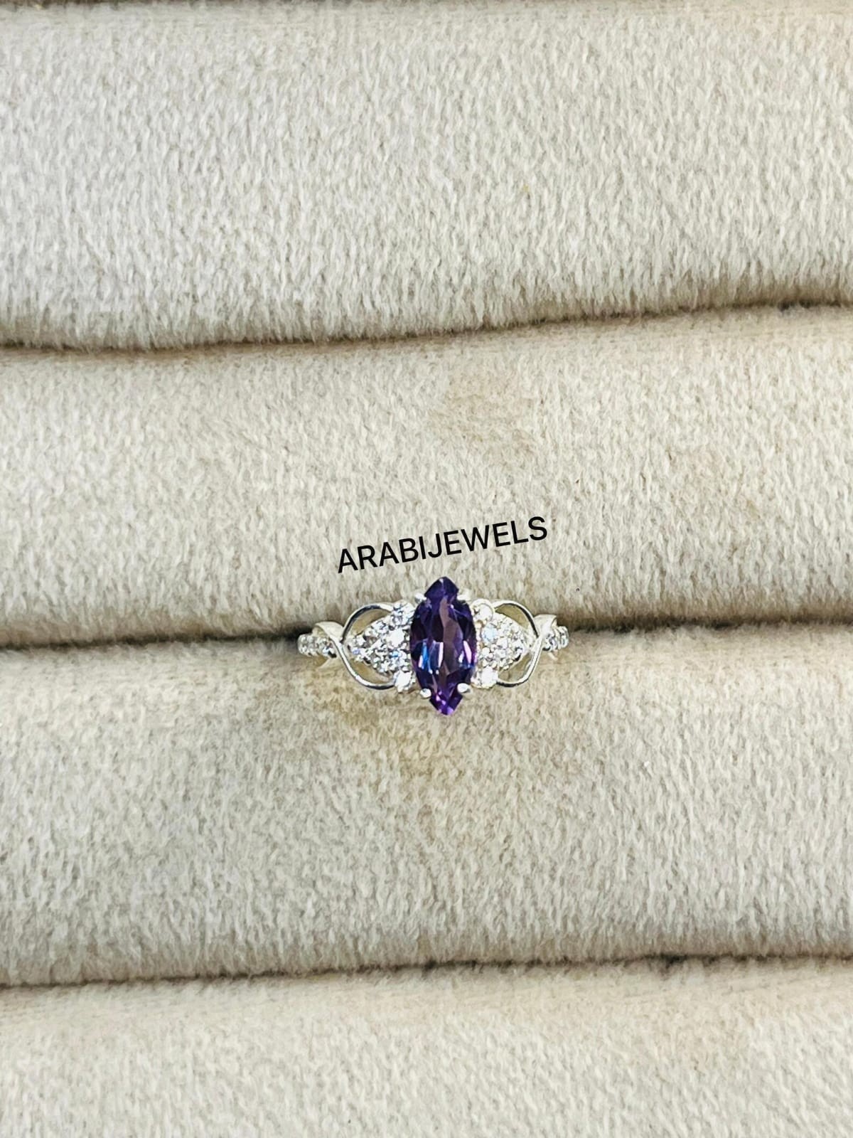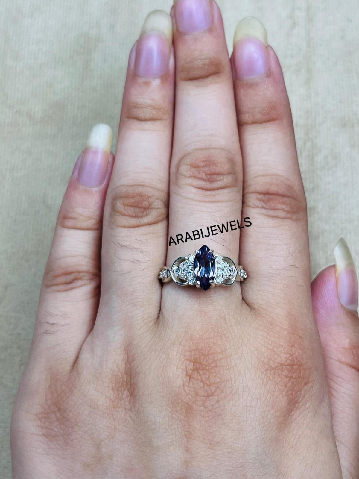Marquise Cut Alexandrite Ring 925 Sterling Silver Gift For Her.