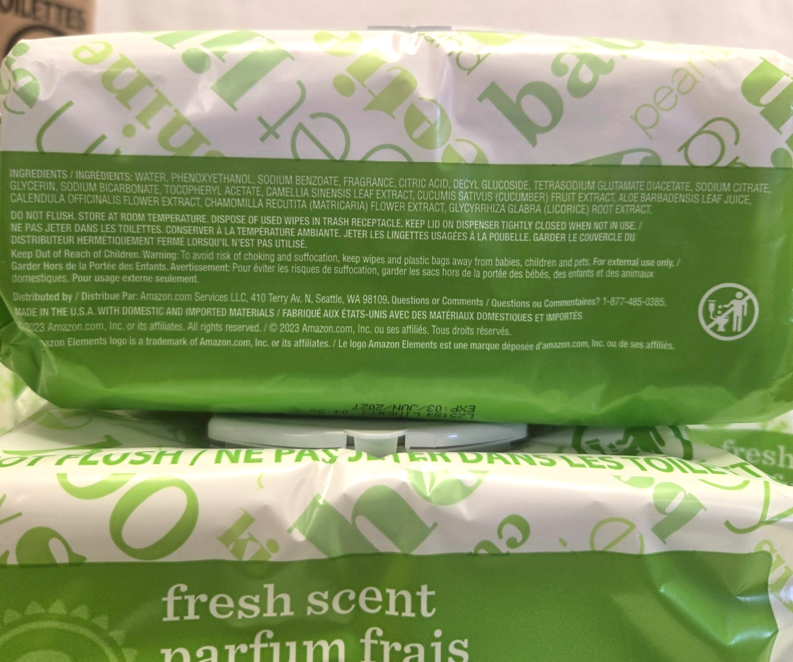 9 PACKS 810 Count Amazon Elements Baby Wipes 9 FRESH SCENT Flip-Top Packs