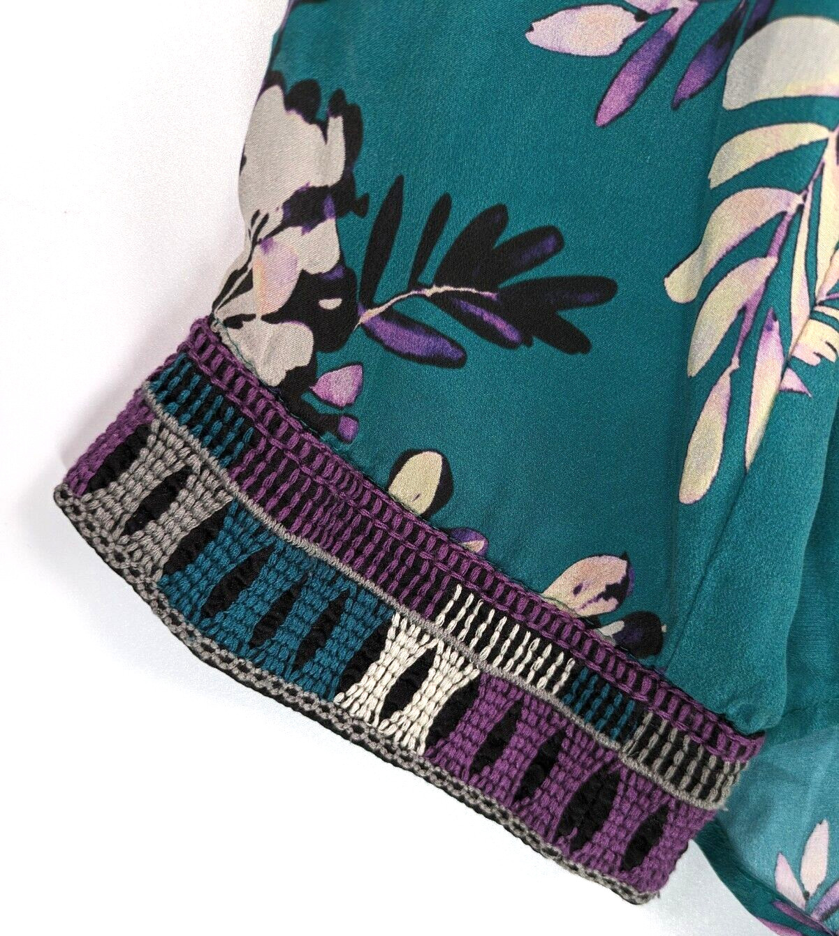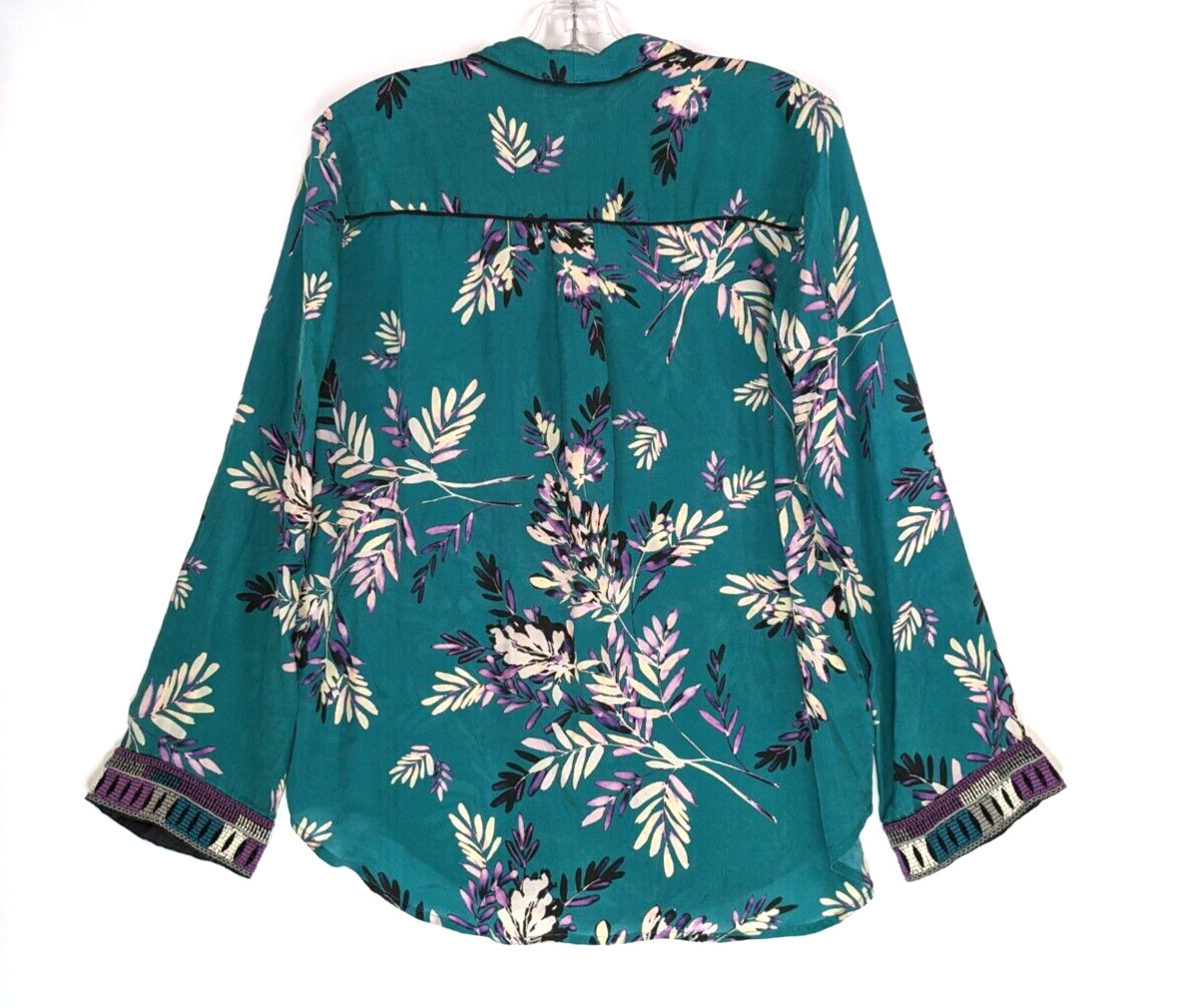 как выглядит Johnny Was Workshop Floral Silk Blouse Small Button Up Embroidered Cuff фото