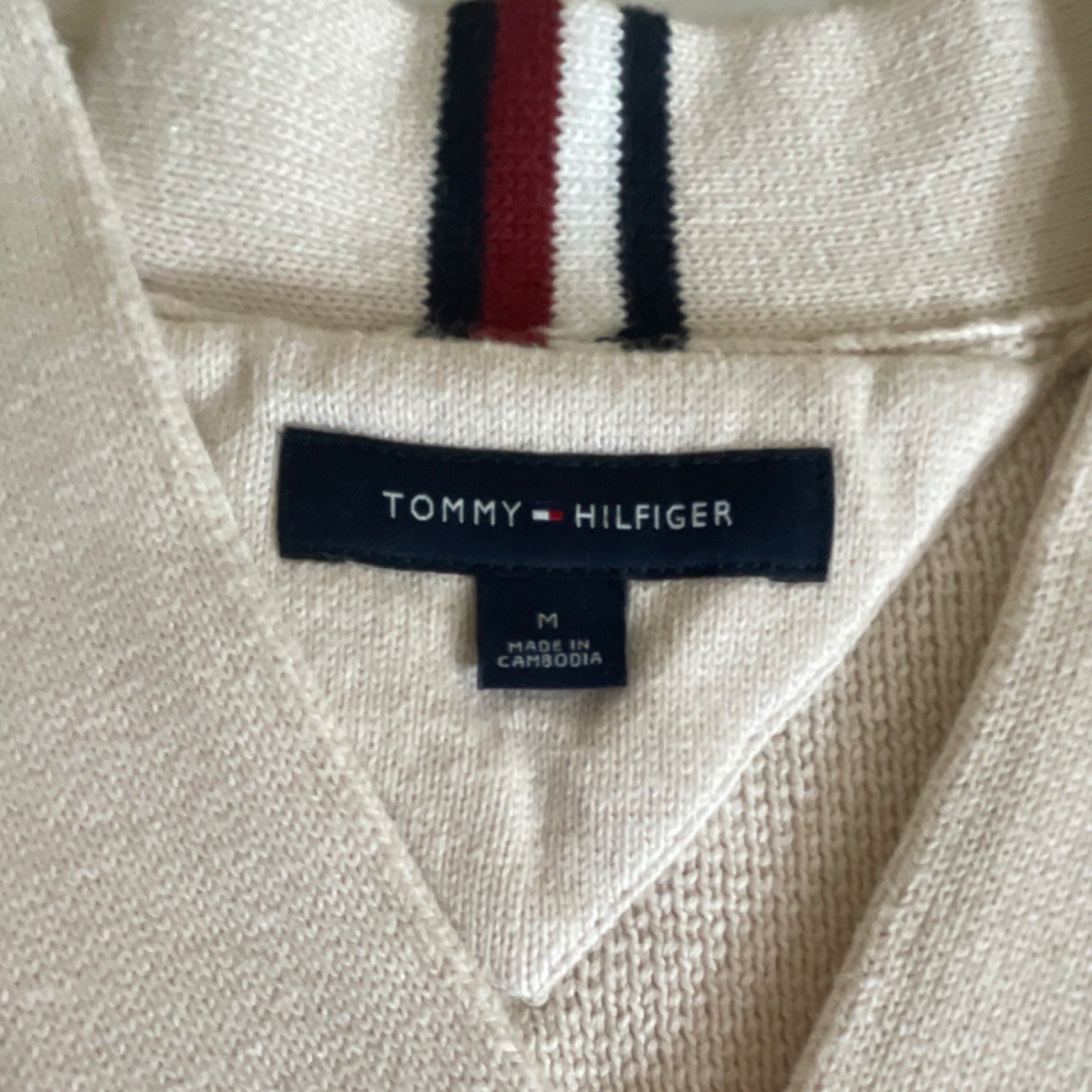 как выглядит Tommy Hilfiger Mens Ivory V-Neck Tight-Knit Pullover Sweater Logo Embroidered M фото