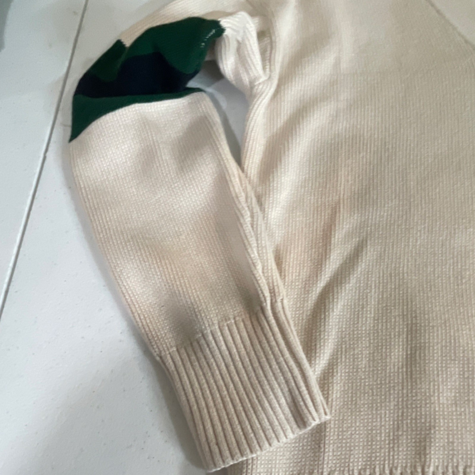 Tommy Hilfiger Men's Ivory V-Neck Tight-Knit Pullover Sweater Logo Embroidered M