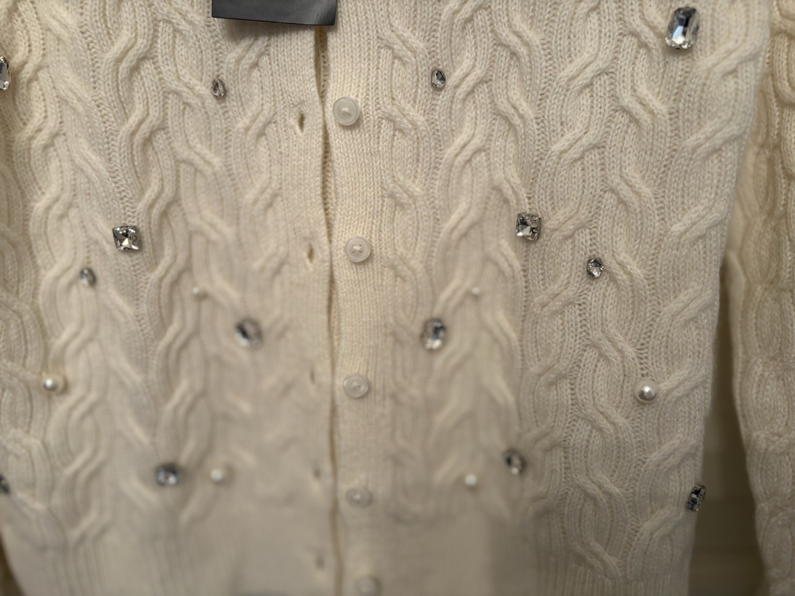 Charter Club Luxury Cashmere Cable Jeweled Cardigan Ivory Sweater XS New