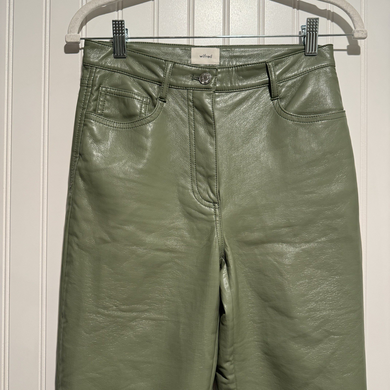 как выглядит Wilfred Melina Faux Leather Pants Straight Leg Bitter Sage Size 2 фото