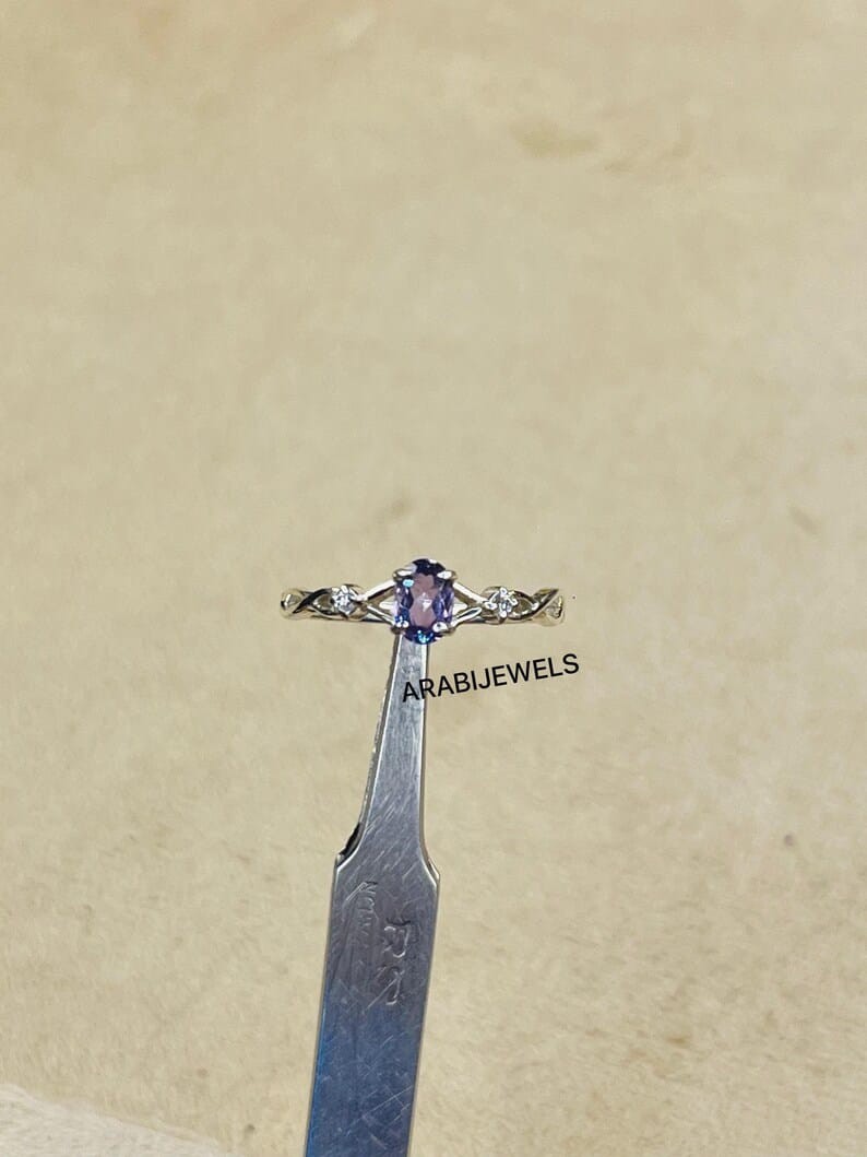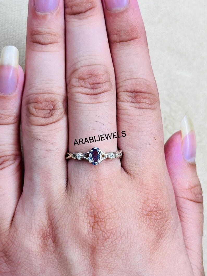 Oval Cut Alexandrite Ring 925 Sterling Silver Gift For Her.